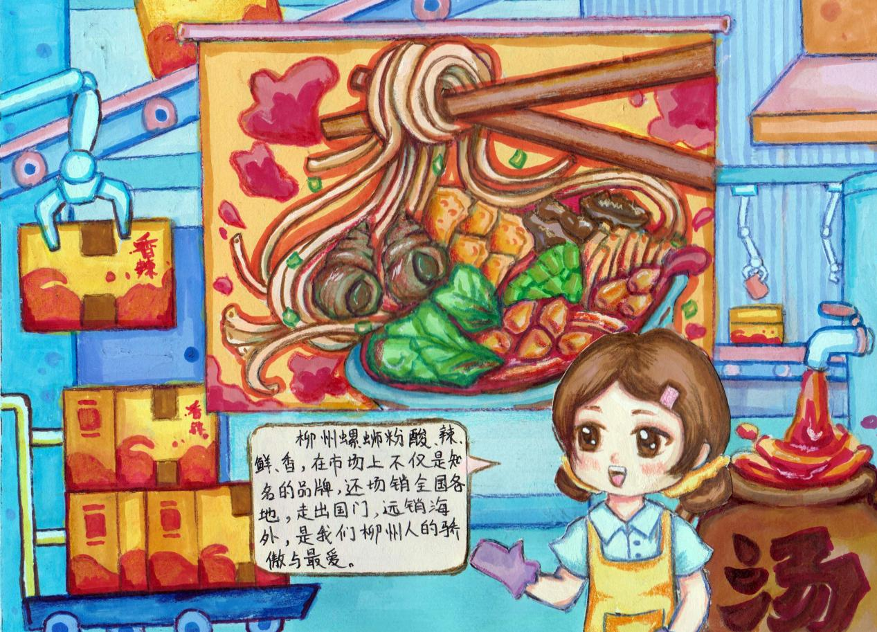 为深入学习宣传贯彻习近平新时代中国特色社会主义思想和党的二十大精神,柳州市交通学校组织学生积极参与由共青团柳州市委员会“学习二十大 永远跟党走 奋进新征程”主题网络文化产品征集活动。韦嘉丽同学运用自己手中的画笔描绘了一幅幅极具柳州文化特色,清新唯美且富有内涵的画面。