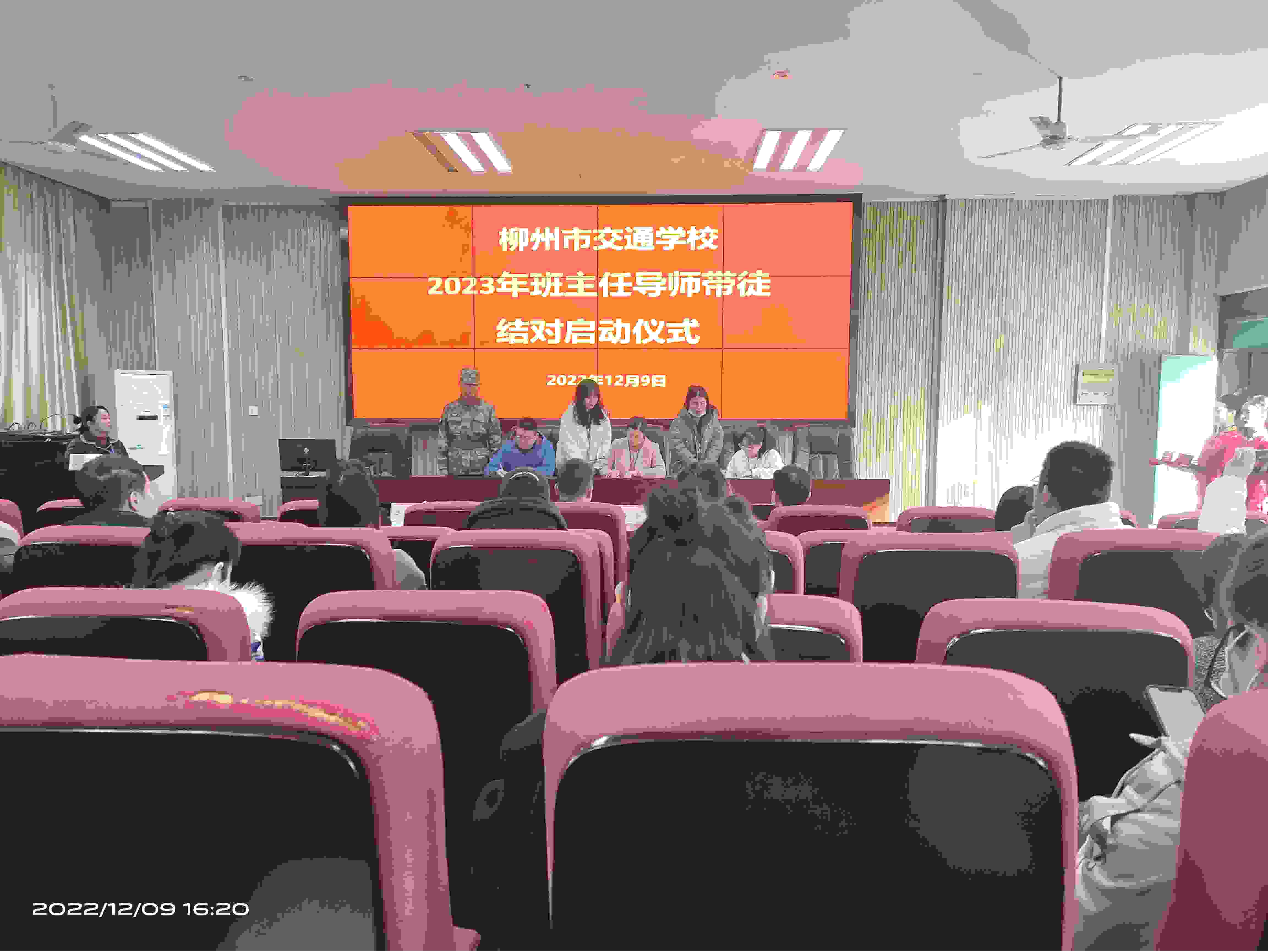 为落实立德树人根本任务,进一步完善班主任队伍培养长效机制,发扬学校师资培养“传、帮、带、教”的优良传统,提升德育教育工作水平。柳州市交通学校于2022年12月9日举行班主任导师制“师徒结对”启动仪式,启动新一年的班主任导师带徒活动。全体班主任及系部领导参加了本次活动。黄䶮校长、校党委副书记梁汉飞、罗柳健副校长出席了本次活动。活动由党委委员、学生工作处主任陈才连主持。