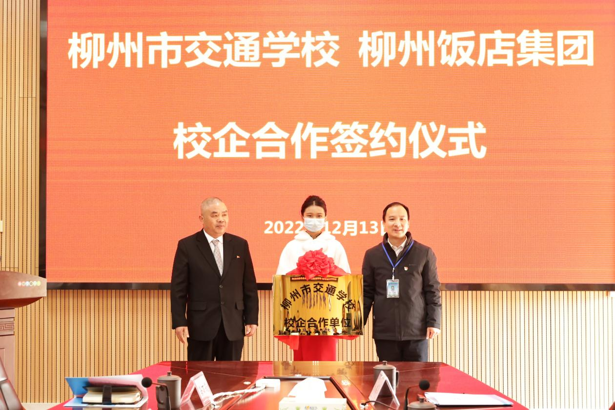 最后,校长黄䶮与柳州饭店集团副总经理孙雷在现场签约并揭牌“柳州饭店集团人才培养基地”,双方领导还先后揭牌了“柳州市交通学校校外实践基地”、“柳州市交通学校校企合作单位”。