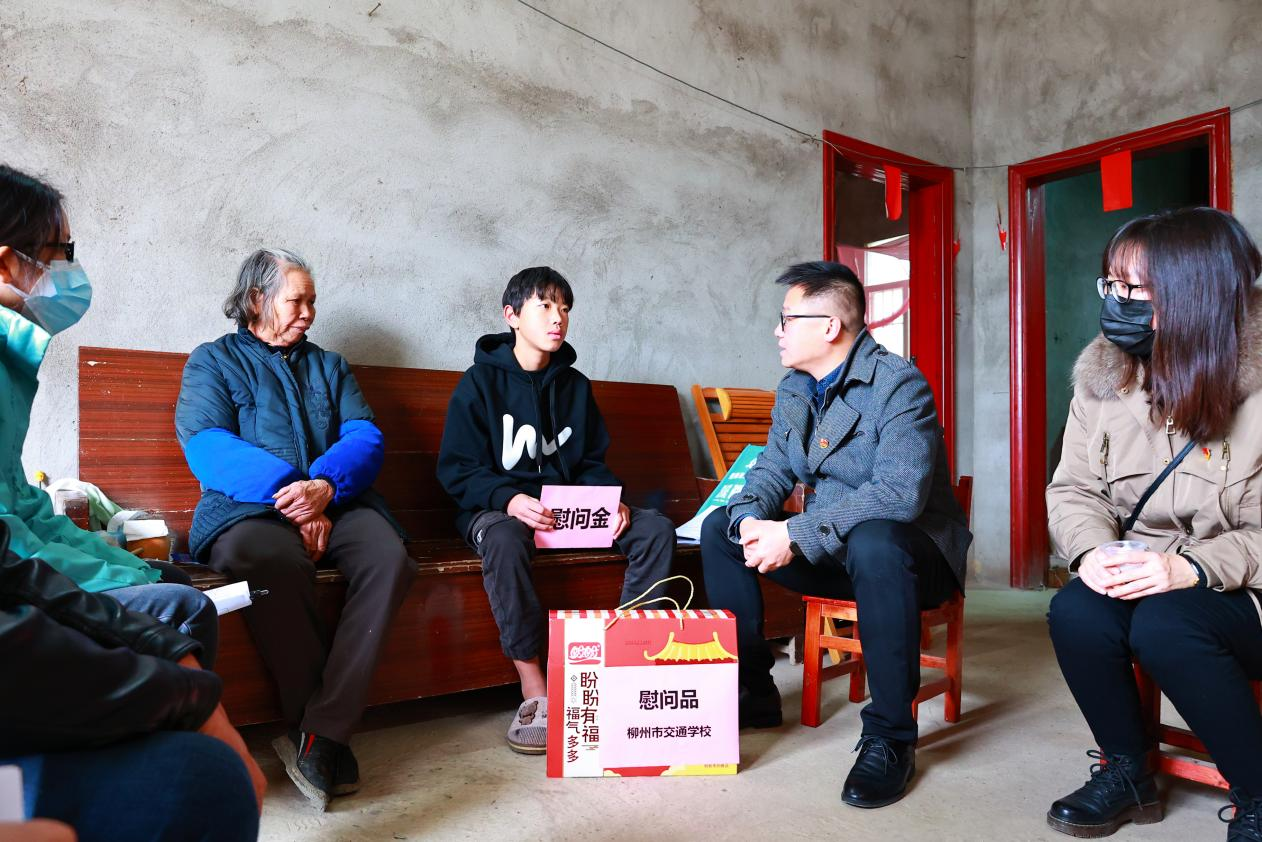 1月5日,柳州市交通学校校长黄䶮到鹿寨县四排镇水头村开展走访慰问活动。