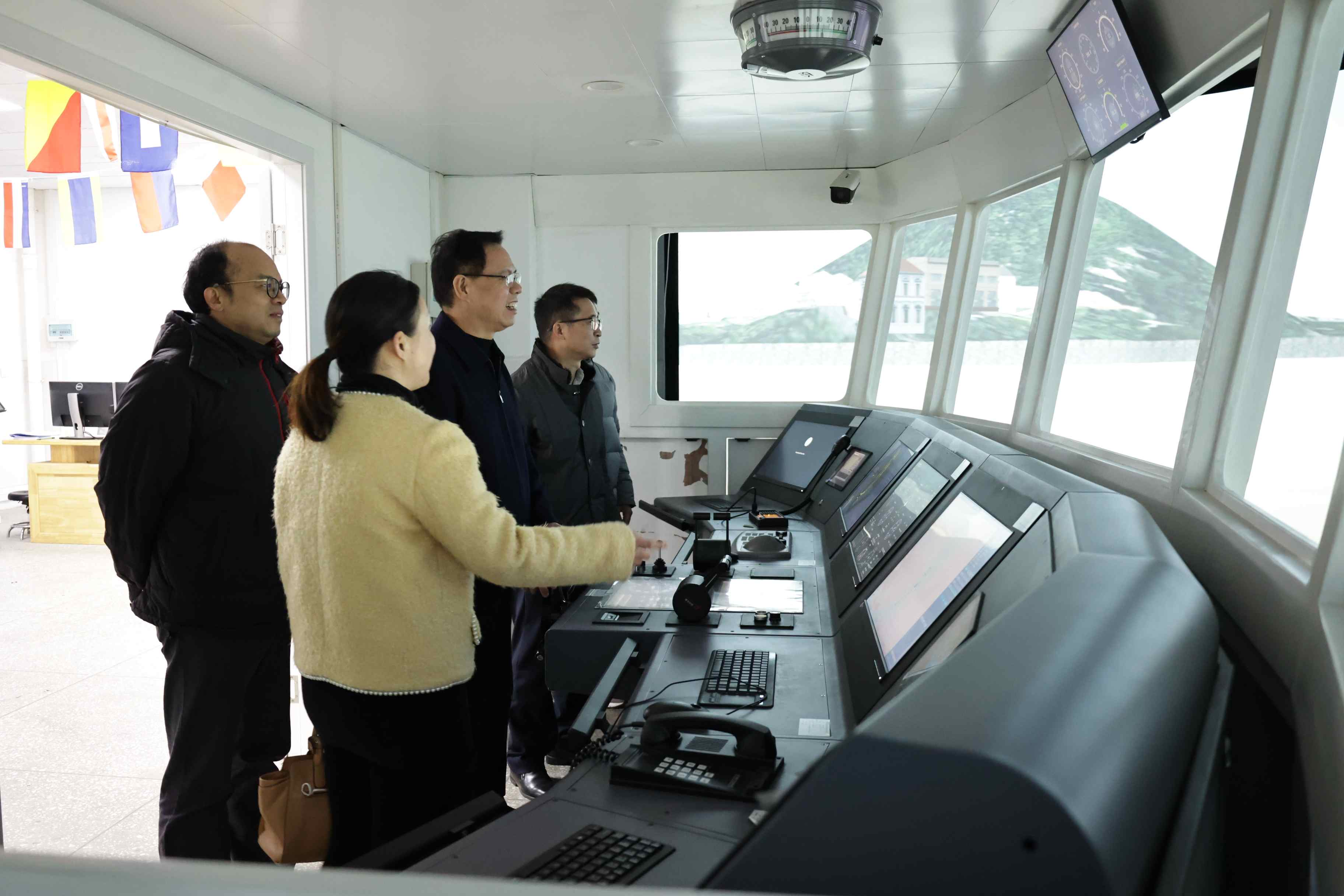 姚副主席一行在参观学校船舶驾驶实训中心