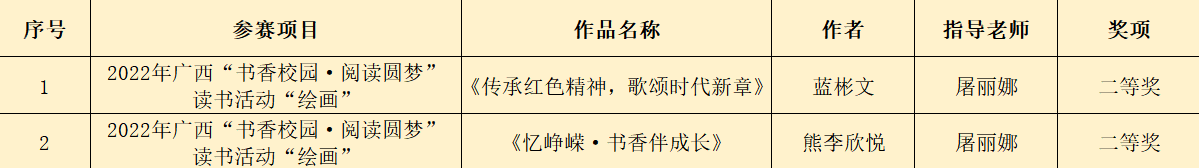 为进一步引导广西中小学校师生积极开展阅读活动,创建书香校园,提高图书的使用效益,充分发挥图书的育人功能,自治区教育厅组织开展了2022年广西“书香校园·阅读圆梦”读书活动。我校动漫专业学生在本次活动中获得二等奖2项。