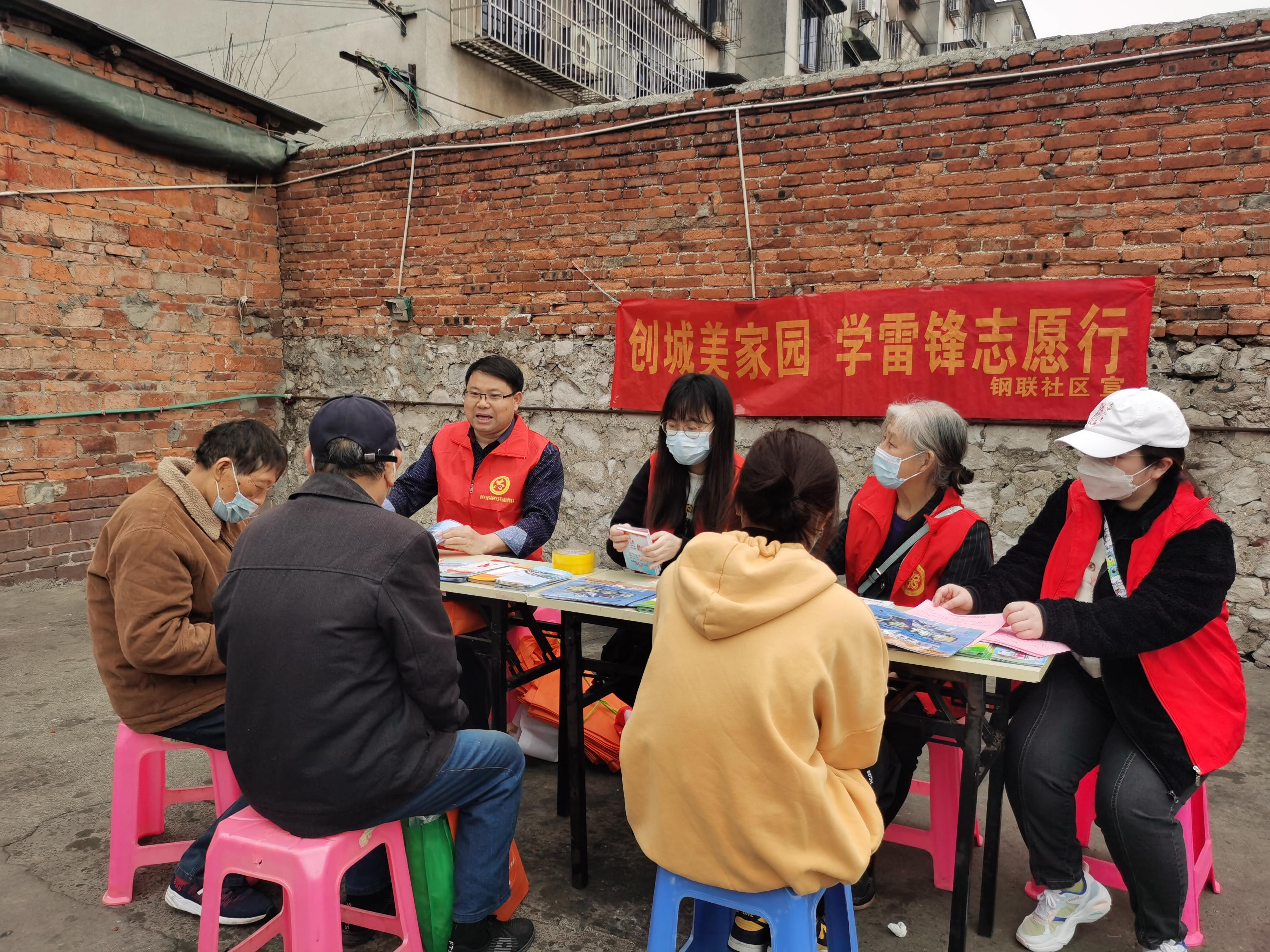 在钢联社区,创建全国文明城的志愿服务宣传活动也正如火如荼地开展。我校师生代表身穿红色志愿服,走进社区,宣讲创城知识,美化社区环境,以实际行动弘扬雷锋精神的时代内涵,让雷锋精神在各个角落都绽放更加璀璨的光芒。