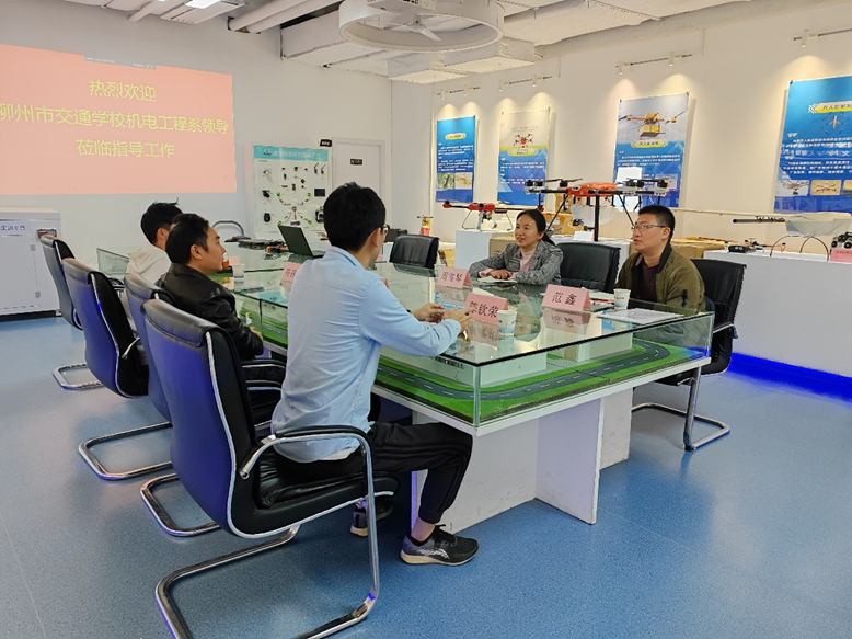 团队到广州迪飞无人机科技有限公司、广州极飞科技股份有限公司、大疆创新科技有限公司三家涉及无人机生产的企业进行调研,了解编队无人机、植保无人机、航拍无人机等设备的先进应用技术,沟通双方开展校企合作、1+X“无人机操作应用”考证、无人机飞行技术师资培训、学生实习就业工作等事宜。