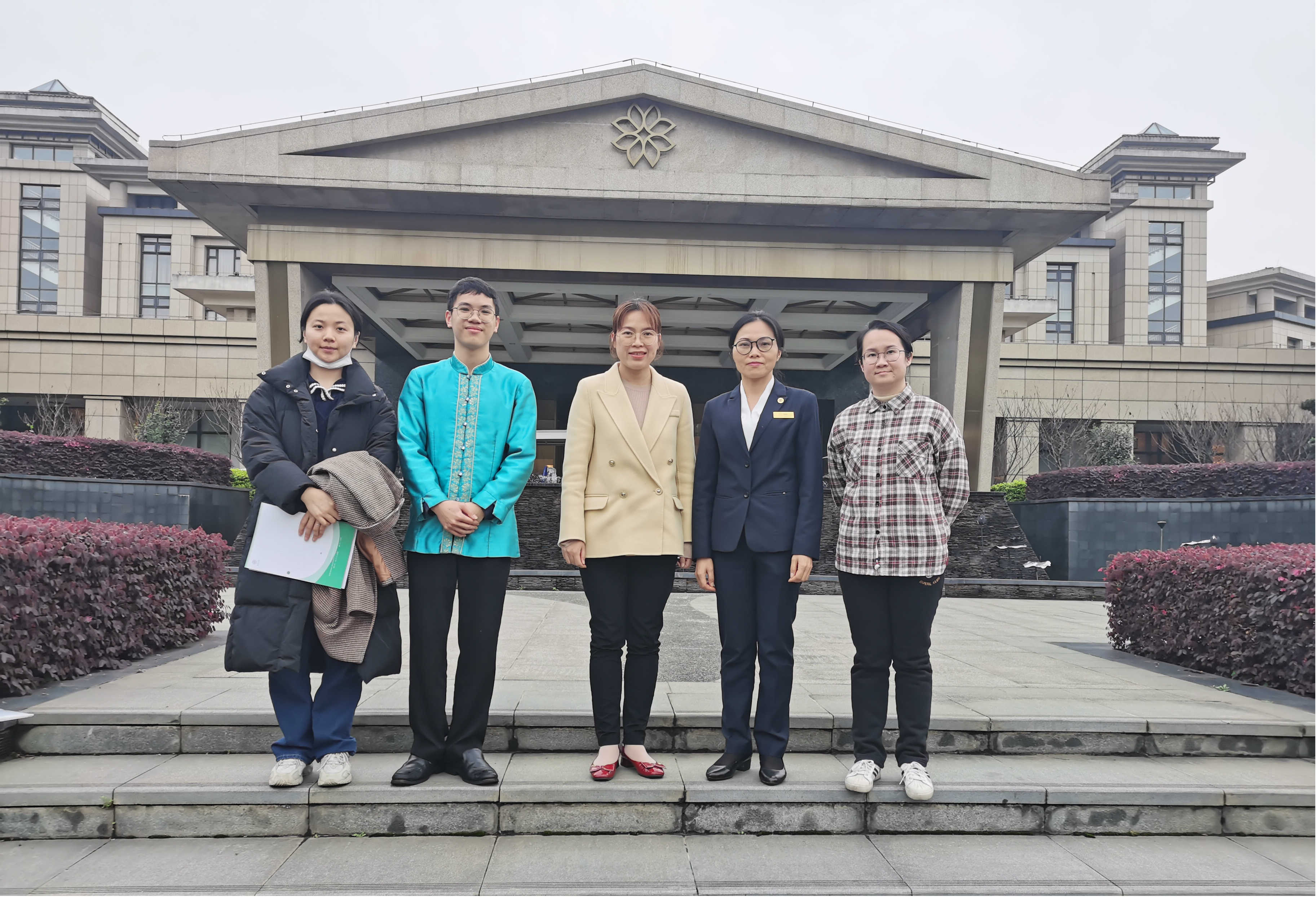 调研团队与莲花山庄人力资源部韦副经理、实习生合照