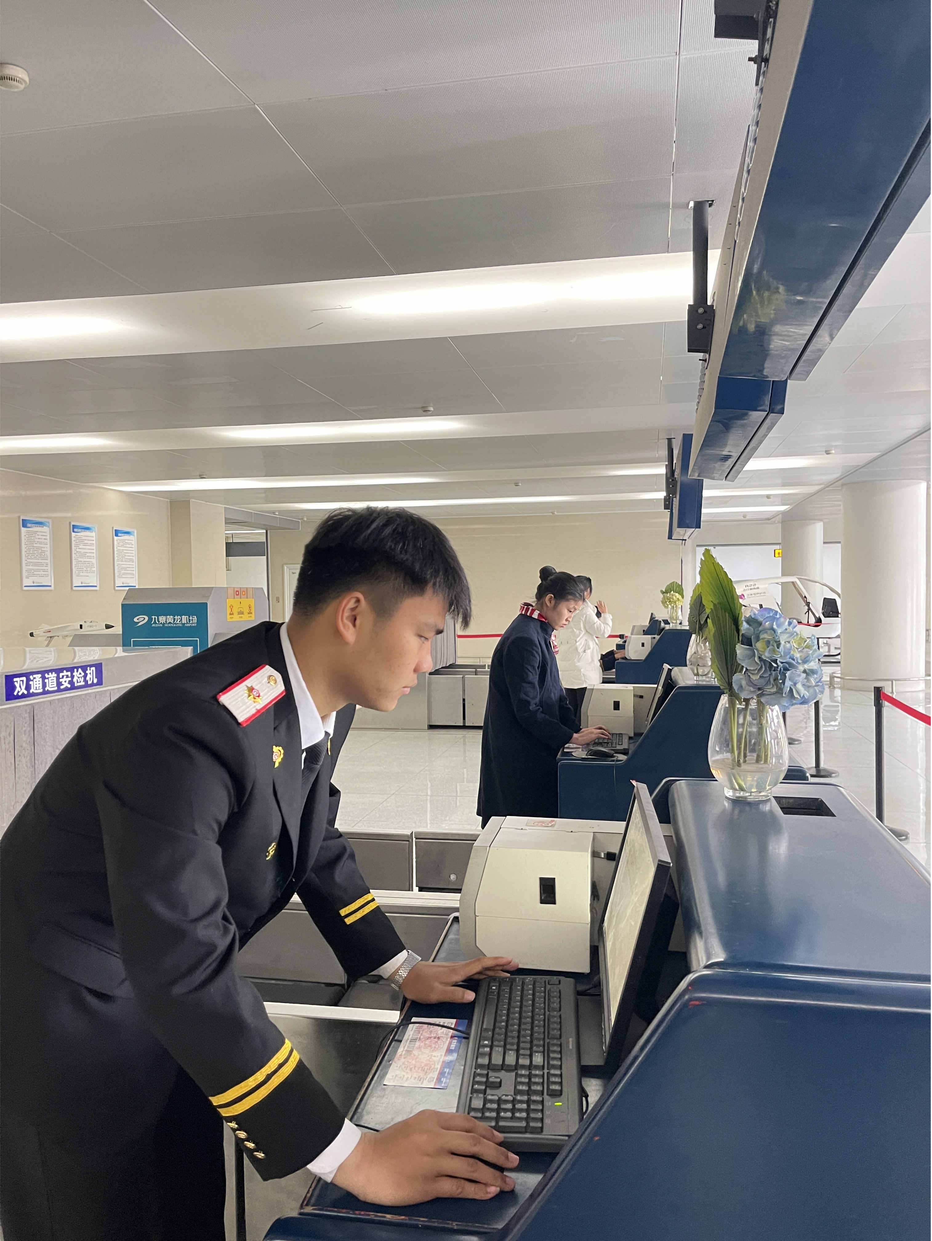 学生进行值机课程体验