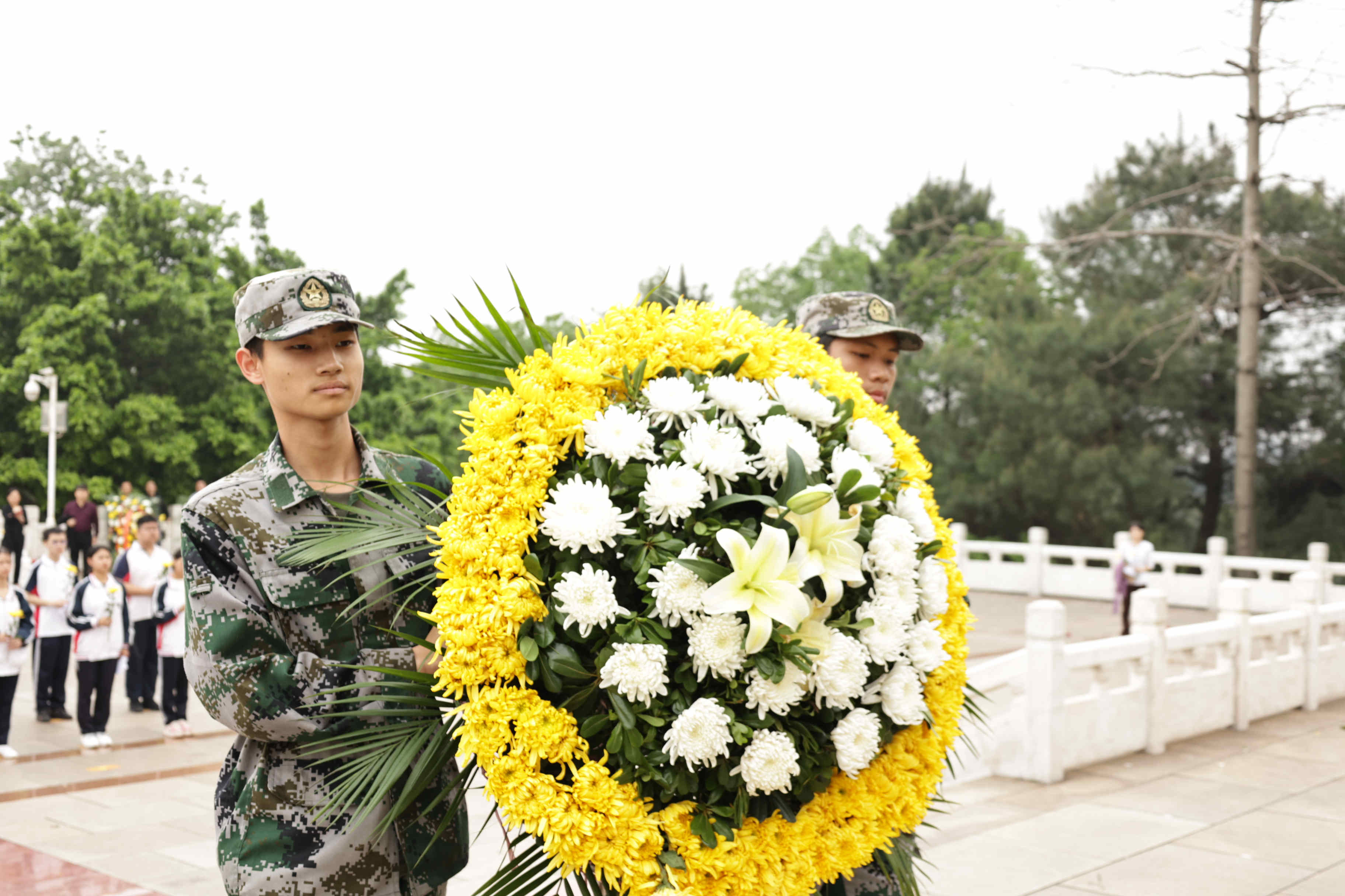 学生志愿者敬献花圈