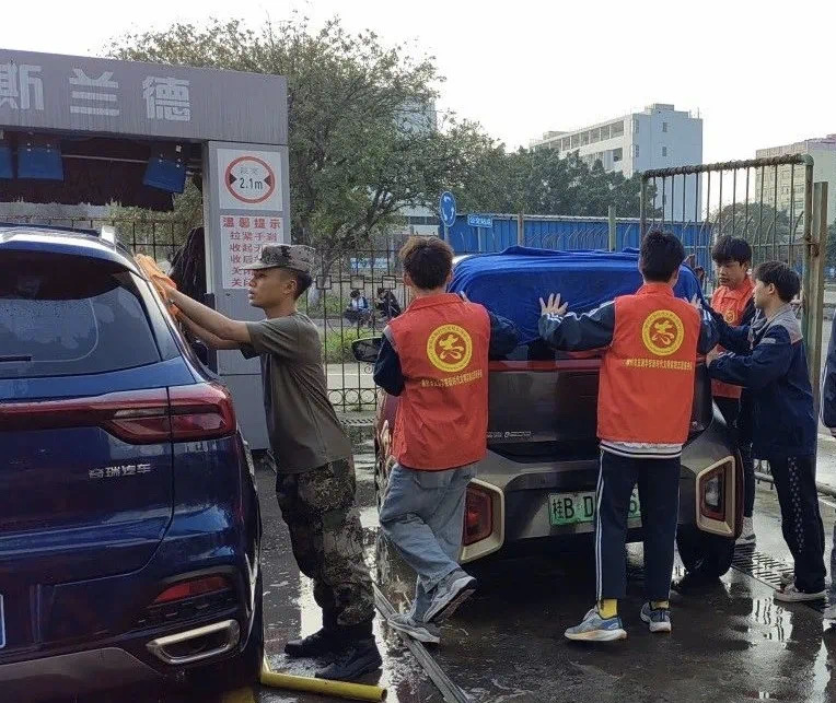 结合汽车工程系专业特色,汽车工程系党支部组织全体党员老师与学生志愿者开展了志愿洗车活动。活动现场,党员教师认真讲解洗车流程及注意事项,给学生志愿者们身体力行上了一节生动实用的“实训课”。学生志愿者们在党员教师的带领下分工明确,从接待、喷水、喷洒泡沫、冲洗、擦干到交车,每个环节都有条不紊的进行着,让每一辆送洗车辆都焕然一新。