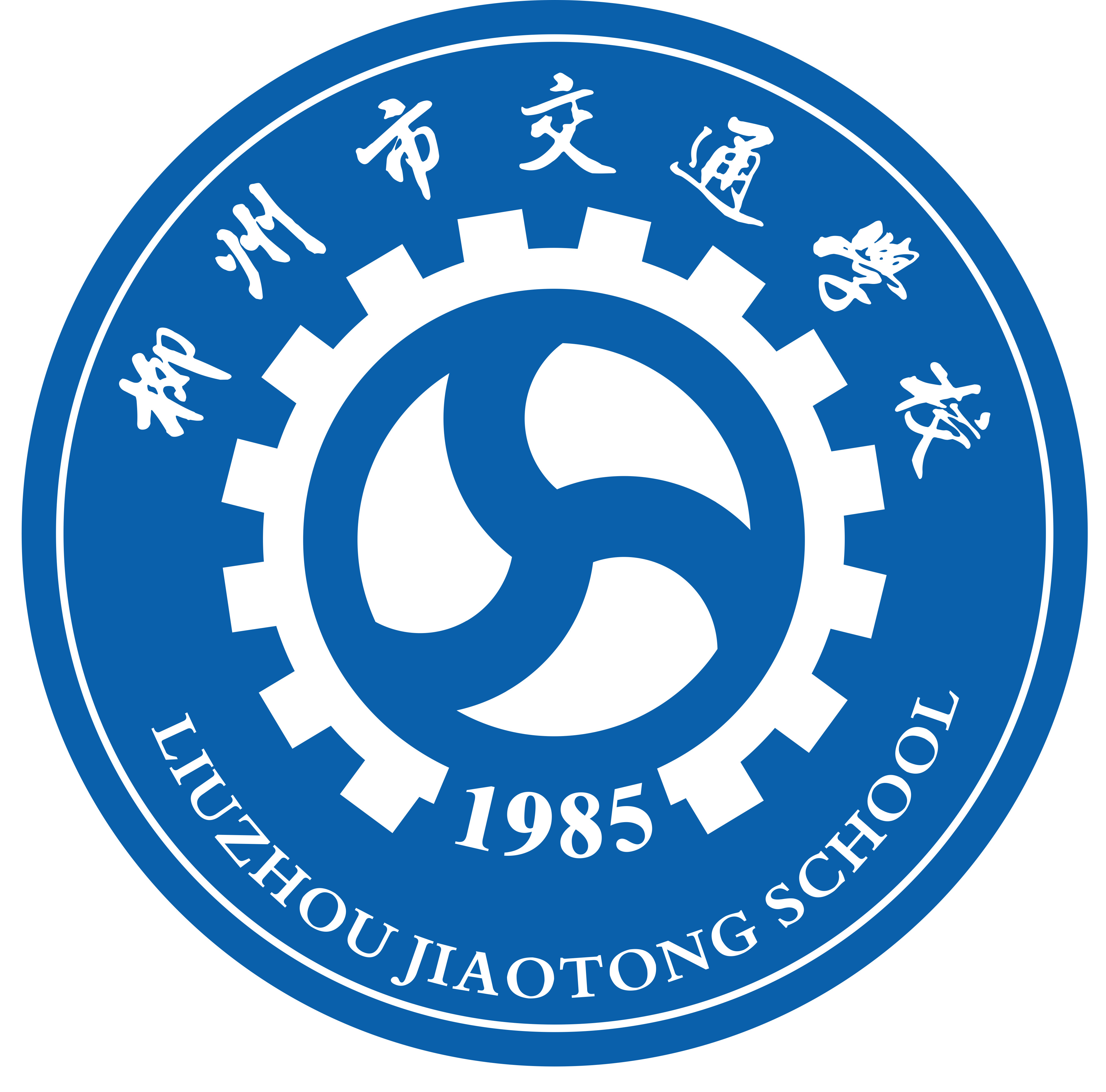2.外圈书写中英文校名:其中上半部分为中文校名,“柳州市交通学校”为中山行书; 下半部分为英文校名。