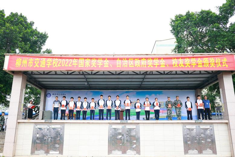 为了表彰和鼓励在2022年各方面表现优秀的同学,激发同学们的学习热情与积极性,柳州市交通学校于 2023 年 4 月17 日上午举行2022年学生奖学金颁奖仪式。校长黄䶮、党委副书记、纪委书记梁汉飞、副校长周轶群及教师代表为学生颁奖,学生工作处和安全保卫科副科长蒙繁荣主持仪式。