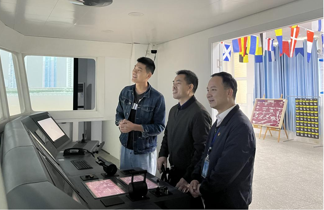 陆正英校长助理还参观了交校的无人机文化展示馆、无人机装调实训室及船舶驾驶模拟仓等,他对交校的特色专业建设,虚拟仿真实训基地建设给予高度评价,希望今后两校进一步加强交流沟通、互相学习、共同提高。