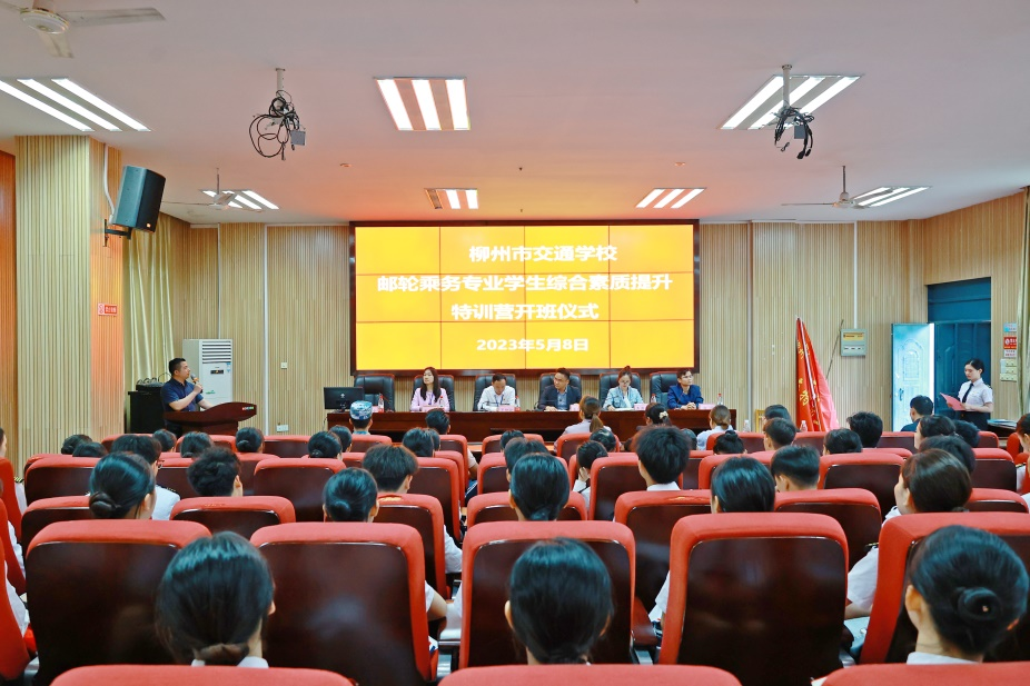 5月8日,交通服务系举行了邮轮乘务特训营开营仪式。柳州市交通学校罗柳健副校长、教务处潘雪玲主任、交通服务系吴潇明副主任、韦柳芳副主任及相关专业教师和广西香海船务凌志勇经理及集训营导师、教官等出席开训仪式。罗柳健副校长为培训营开训致辞。他鼓励同学们抓住此次机会,努力提升自身综合素质及服务技能水平,向企业用人需求靠拢。广西香海船务有限公司凌志勇经理和罗副校长共同进行授旗仪式,并由讲师带领同学们进行了开营宣誓。开营仪式后,2021和2022级邮轮乘务专业同学们集中志高楼5-1教室,所有同学分为4组进行团队学习。团队作战的模式,充分激发了同学们学习的内驱力,课堂氛围十分火热。同学们兴奋地表示,这样的氛围让自己沉浸其中,不知不觉一节又一节课就过去了。为期一周的集训不仅提升了同学们的综合素质、职业技能,也让同学们提升对学习技能和未来就业的信心。