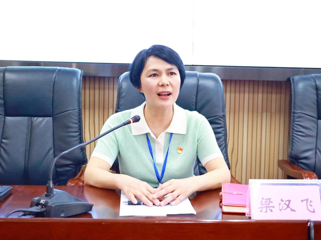 校党委副书记、纪委书记梁汉飞致辞,她引用了习近平总书记在北京大学师生座谈会上的讲话,告诫在场的同学:“第一粒扣子扣错了,剩余的扣子都会扣错”,所以作为中职生,大家一定要养成良好的思想道德意识、纪律意识。对此,她向学员们提出了:“明确责任,勇于担当;勤奋学习,知行合一;争当模范,甘于奉献”这三大要求,希望在场的学员们通过此次团章学习班的学习提高思想政治素质,将培训成果转化为听党话、跟党走的坚定信心,勇于开拓进取,积极探索创新,用青春奋斗奏响“请党放心、强国有我”的时代强音。梁书记以《奔跑的青年 做青春接力人》为题,讲授第一课,讲述各行各业的青年的奋斗路程,号召学员们勇于承担责任,敢于拼搏,接过青春赛道上的接力棒,在跑道上跑出好成绩,跑出精彩的人生。