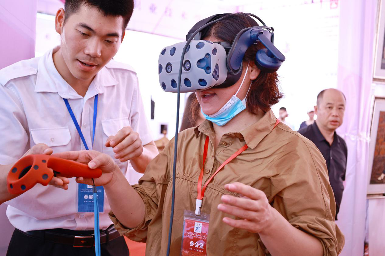 自治区教育厅职成处主任郭进磊(左四)参观我校展区
