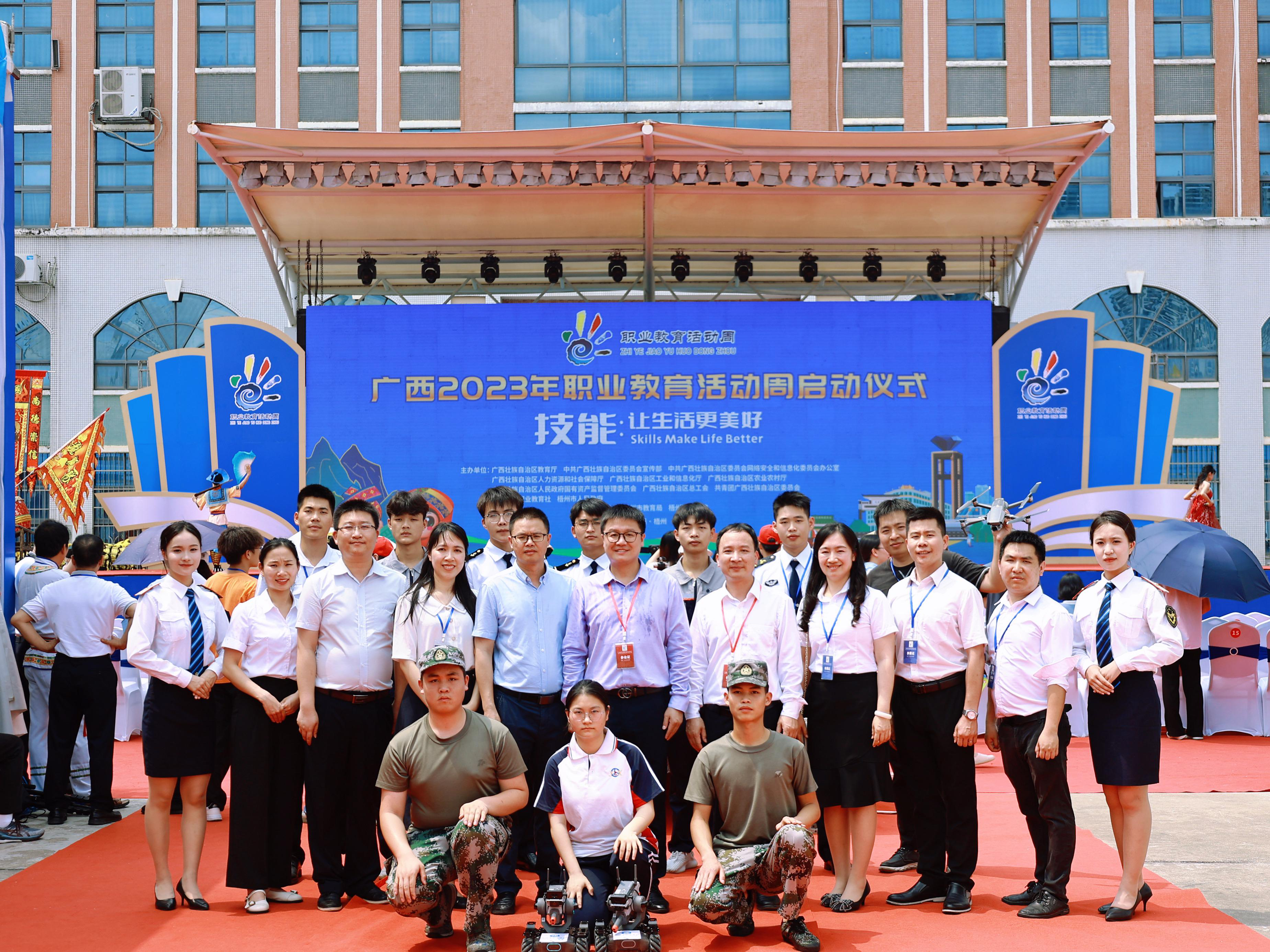 为深入宣传贯彻党的二十大精神和习近平总书记关于职业教育的重要指示批示精神,贯彻落实新修订的职业教育法和《关于深化现代职业教育体系建设改革的意见》,推动现代职业教育“一体两翼五重点”建设改革,5月18日,广西2023年职业教育活动周启动仪式在梧州市举行,来自全区200多所职业院校的师生齐聚梧州职业学院,通过展板、专业技能展示、成果展出等形式彰显学校特色。自治区党委教育工委书记、教育厅党组书记、厅长刘友谊,教育厅职成处副处长廖造壮 、教育厅职成处主任郭进磊、柳州市教育局调研员曾建胜等领导及兄弟院校嘉宾莅临我校展区观看了以“立足大交通、筑梦海陆空”为主题的参展项目,充分肯定了我校特色和办学方向,纷纷为我校点赞。