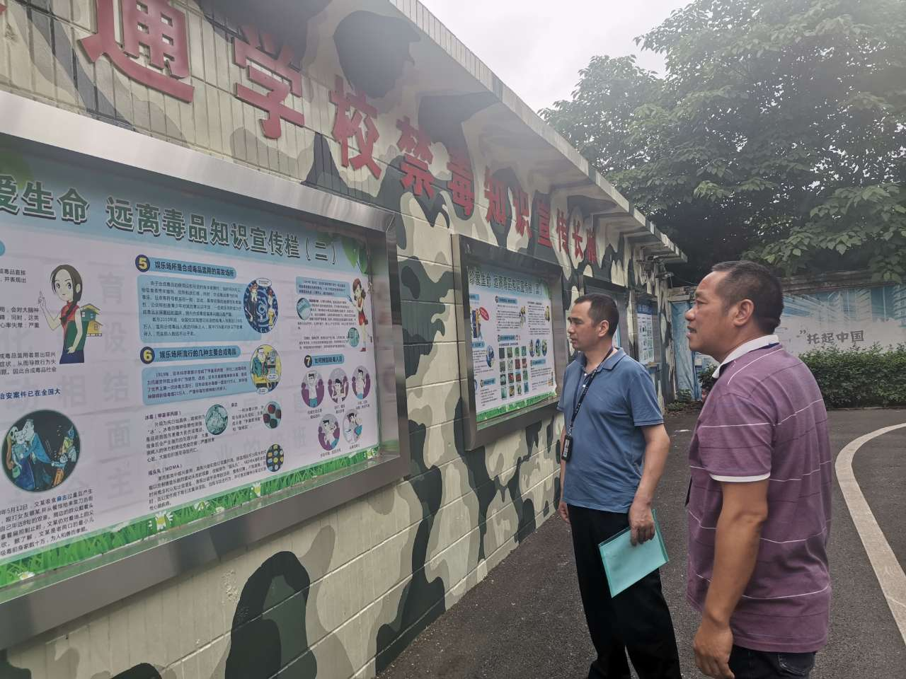 杨科长对我校校专职保安配备、安全防护器械配备、禁毒、全封闭式管理落实情况等开展督导检查。