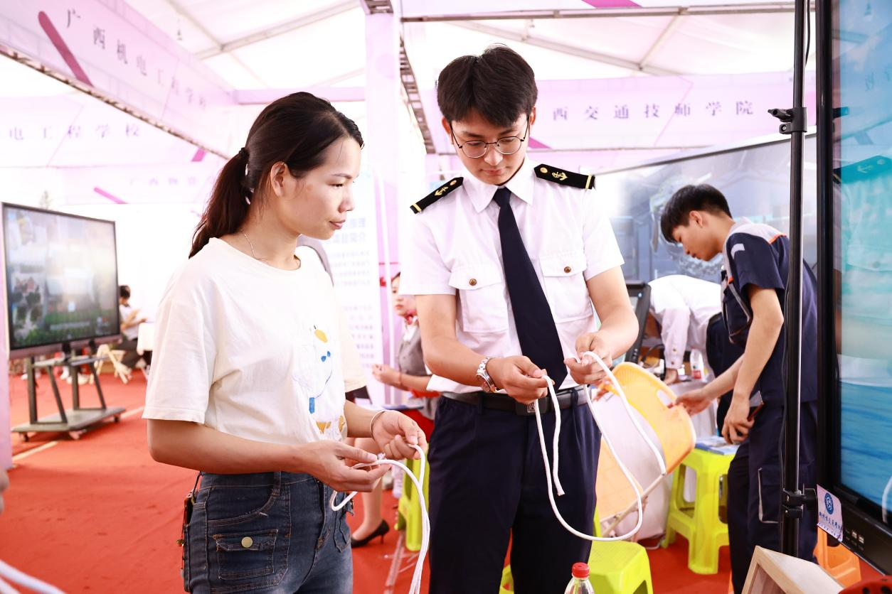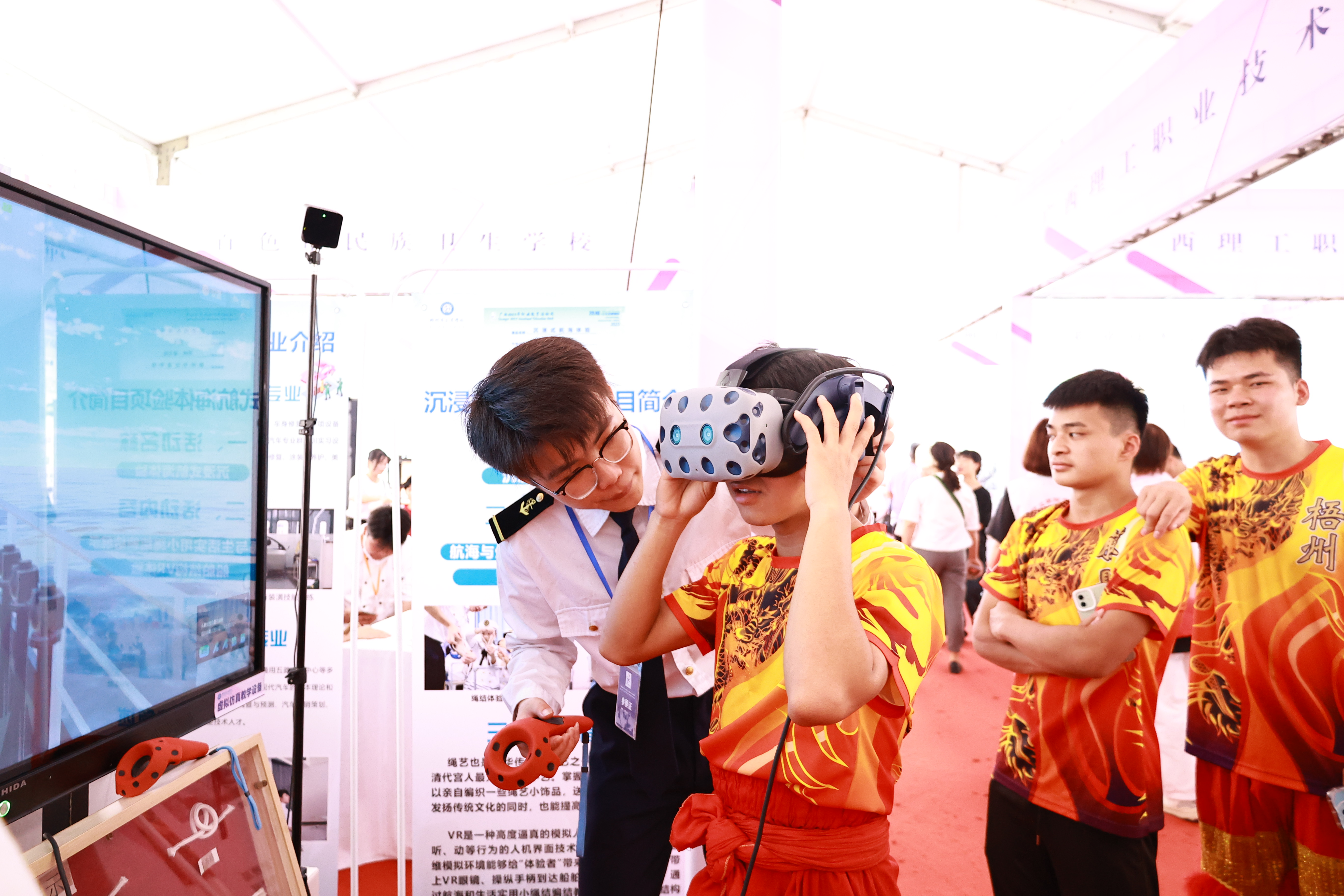 近日,广西2023年职业教育活动周在梧州职业学院顺利落下帷幕。今年职教周活动主题是“技能:让生活更美好”,我校校长黄䶮、副校长罗柳健、副校长周轶群带领我校师生代表积极参与职教周活动,我校通过展板、专业技能展示、云展厅等形式进一步普及职业教育,提高人们对职业教育的认识和支持度。我校展位不仅得到自治区教育厅、柳州市教育局领导等领导的高度关注,还受到了学生的争相打卡体验。