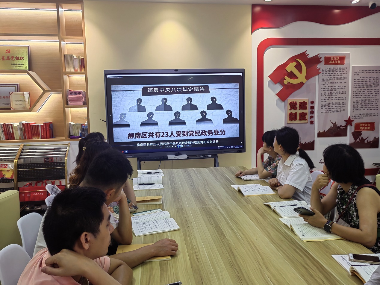 活动现场,柳南区人民检察院党总支副书记、第二检察部主任李伏秀结合案例讲授了一场廉政教育微党课。微党课有实例、有总结、有理论,干货满满,警醒大家要以案为鉴,坚守底线。在一个个鲜活的案例中,党员同志们深刻认识到了腐败行为对党、对国家、对社会、对家庭、对个人造成的严重危害,告诫自己要常怀律己之心、常思贪欲之害,坚守“底线”,不越“红线”,将廉洁廉政真正落实到工作之中。