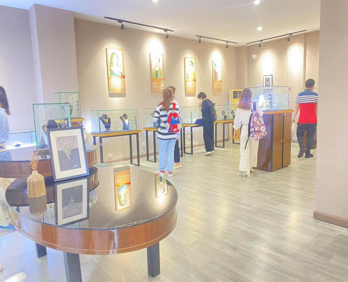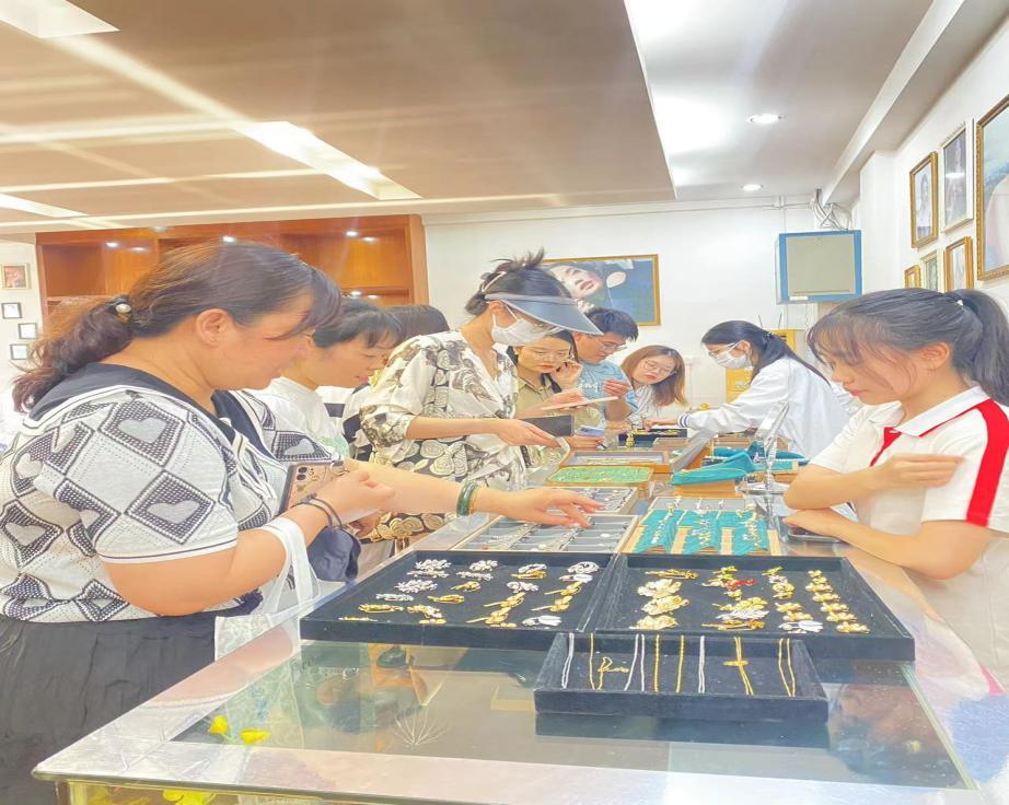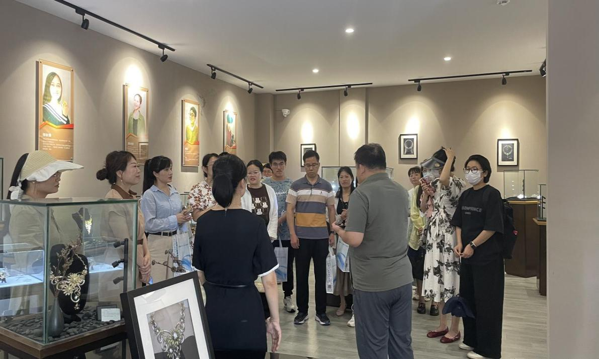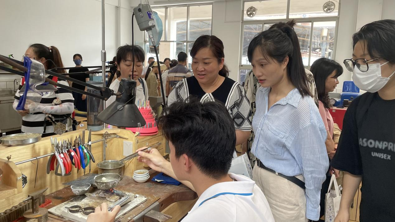 李晓萌主任带领大家参观了学校珠宝展览馆,介绍了珠宝展览馆里的珠宝展览品是由本校首饰设计与制作专业的学生精心打磨、认真设计而成,是学生的品质作品,珠宝展览品别具一格,在场的老师们感受到了首饰设计与加工专业的特色与亮点。大家参观了珠宝打磨加工、珠宝镶嵌、珠宝设计、珠宝实训室场等基地。在珠宝加工及珠宝实训室基地中,感受到了郑敬诒职业技术学校首饰设计与加工专业的体系化与数字智能化,同时也了解到郑敬诒职业技术学校的先进教育理念和专业化办学,开拓了大家的视野。