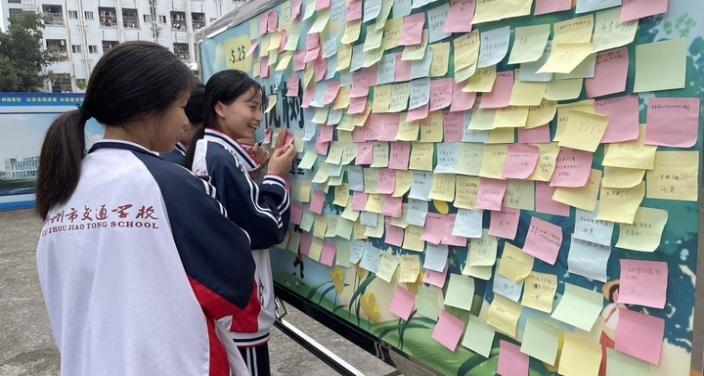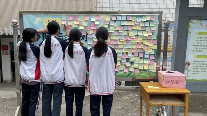 525谐音“我爱我”。学校心理健康中心举办525心理健康月系列活动的目的是让学生在活动中体验关爱自我,阳光成长。在心晴忘忧树活动环节,学生纷纷在图书馆一楼门前的“忘忧树”展板上留下自己的烦恼:“我的父母总是不理解我”、“我为自己的身材感到自卑”、我没书读了”......课余时间,留言板前引来不少学生驻足观看。