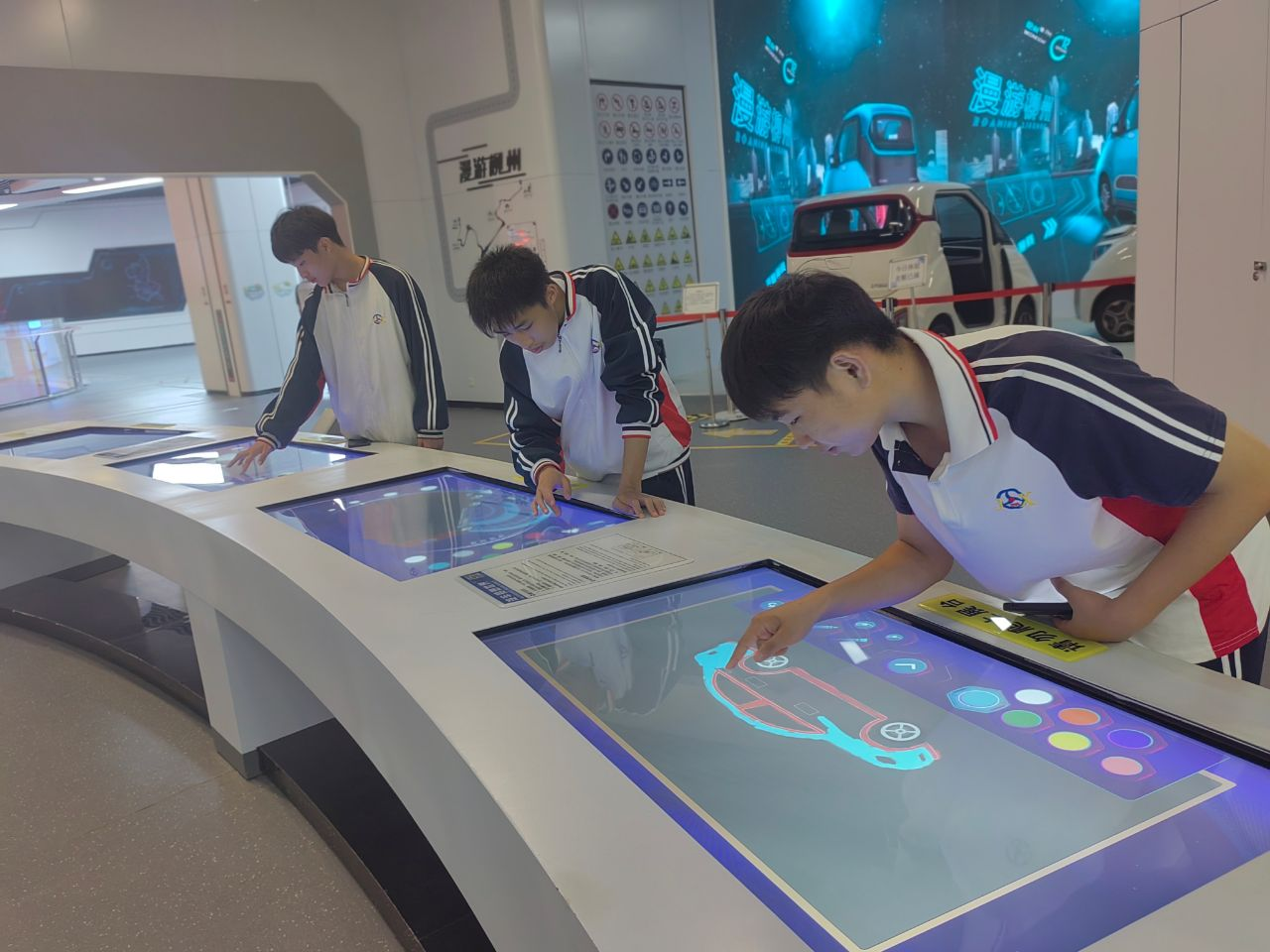 学生干部们整齐有序列队进入科技馆后,被充满现代科技元素的机器和设备所吸引,各类体验式的科技游戏、装备、实物与媒介让同学们驻足,流连忘返,先进的科技智能冲击着大家的视觉和大脑。