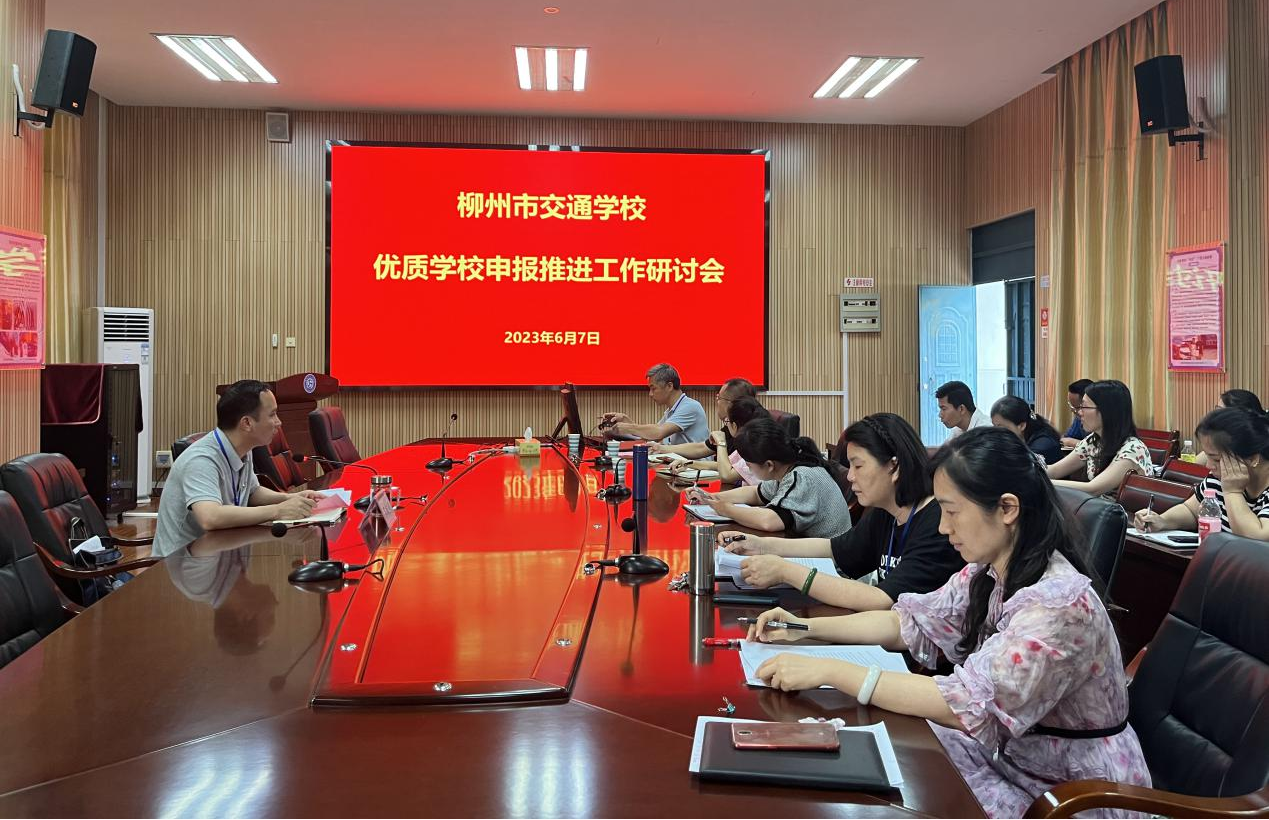 6月7日,柳州市交通学校在志远楼第二报告厅召开双优学校申报推进工作会议。会议由罗柳健副校长主持,党委办公室、学校办公室、发展规划和质量办公室等部门负责人、高质量教育教学专家指导委员会委员参加此次会议。