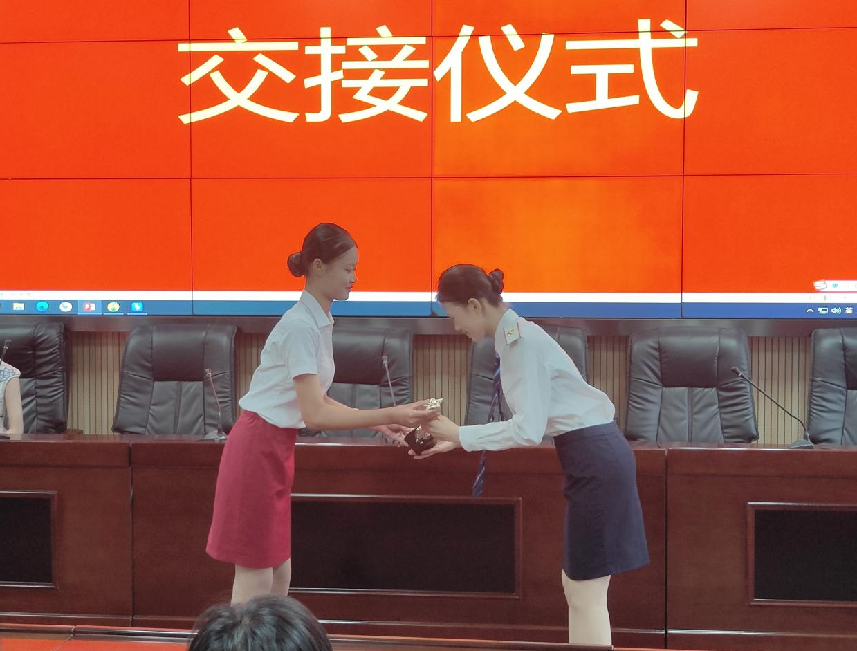 一份交接,一份责任,一份荣誉,一种激励,换届交接是承前启后,更是开拓创新,希望同学们可以在交接仪式后承担起责任,带领队员迈向新征程!