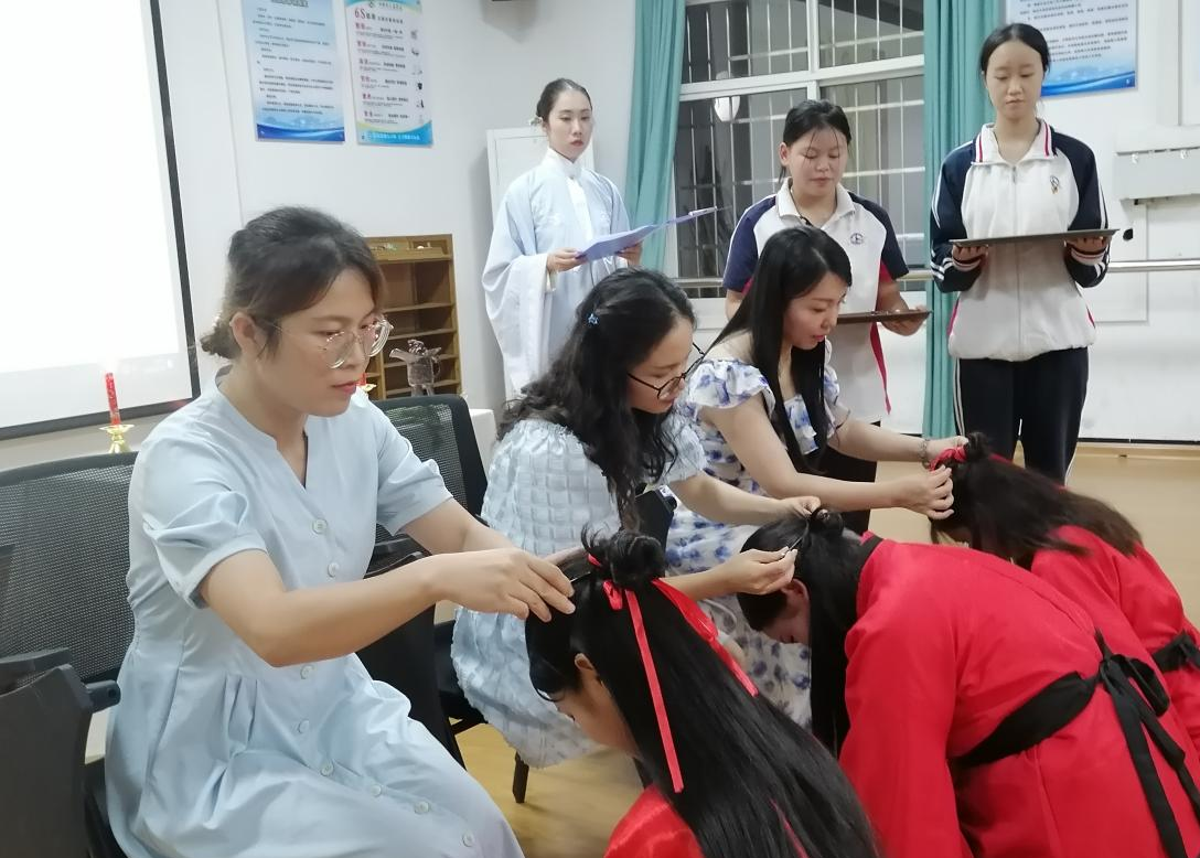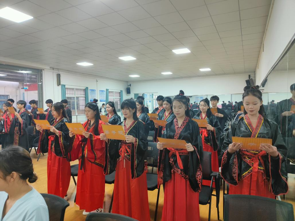 2023年6月20日,21高铁1班在黄芸老师的组织下,身着传统汉服,举办了一场具有传统文化的成人礼。本次“成人礼”冠笄礼)活动分为正衣冠、礼拜先师、顶上添彩、聆听师训、诵读经典等内容。