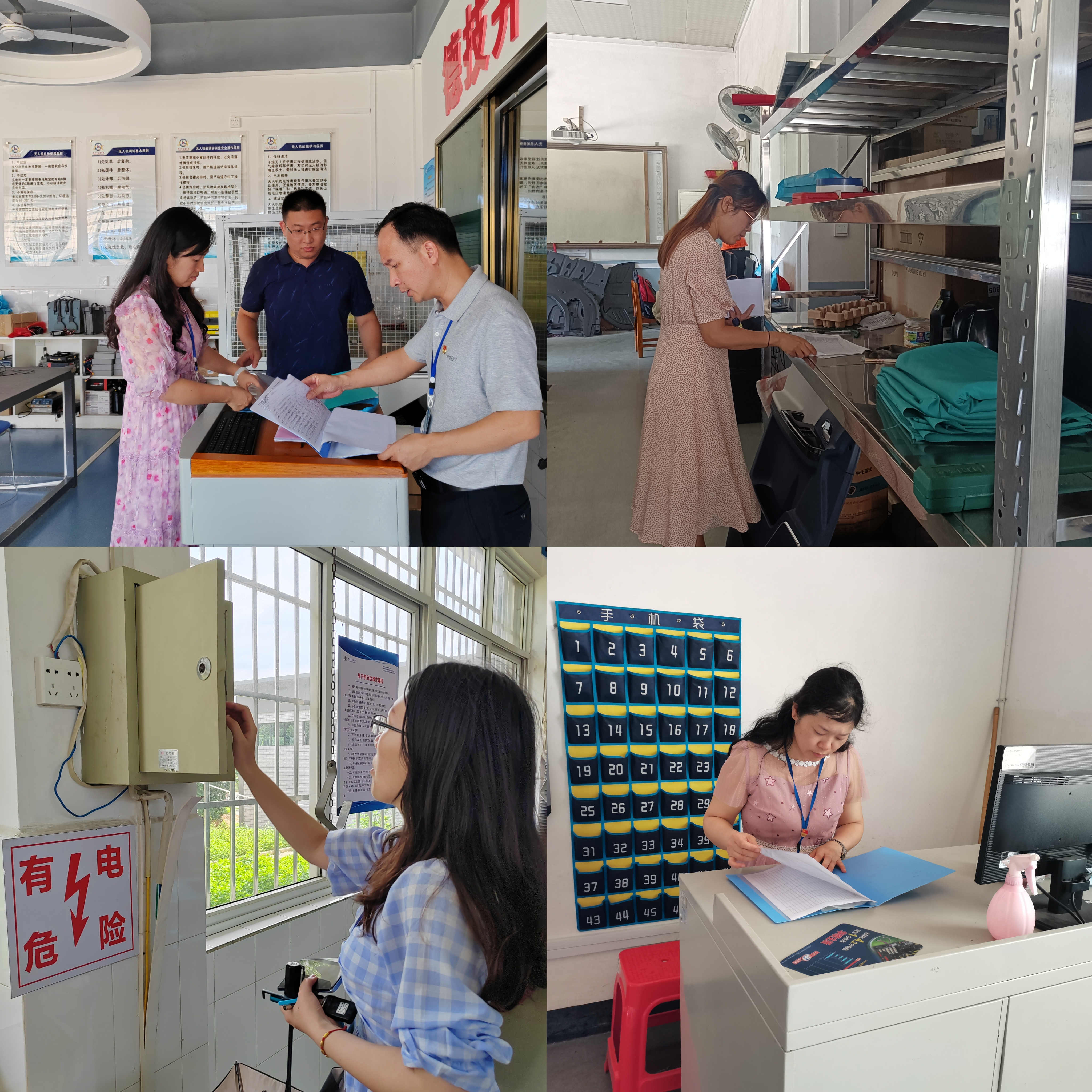 根据学校关于开展2023年期末、暑假前安全检查工作的通知要求,教务科研处组织开展期末实训场所安全检查,罗柳健副校长、教务科研处主任、副主任,各系部主任、教学副主任、教学秘书,各实训场所负责人参与检查。