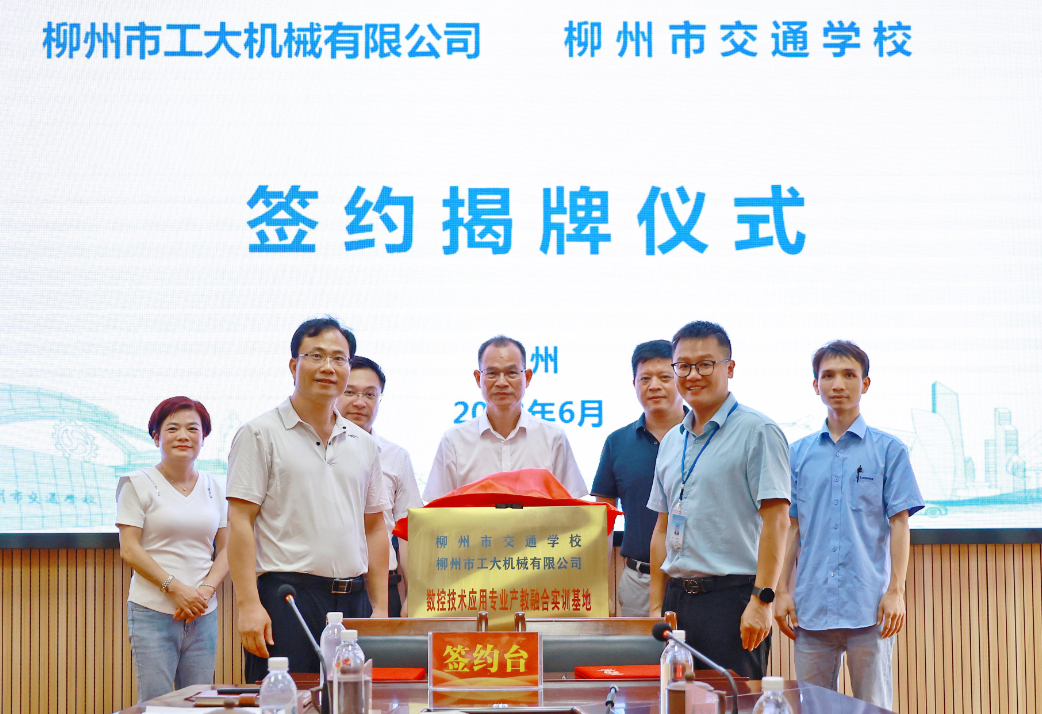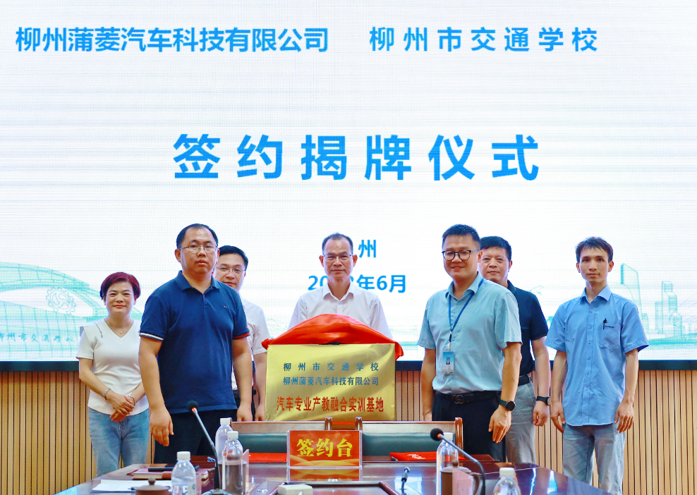 最后,学校分别与柳州市工大机械有限公司、柳州蒲菱汽车科技有限公司进行了校企共建实训基地现场签约与揭牌仪式。