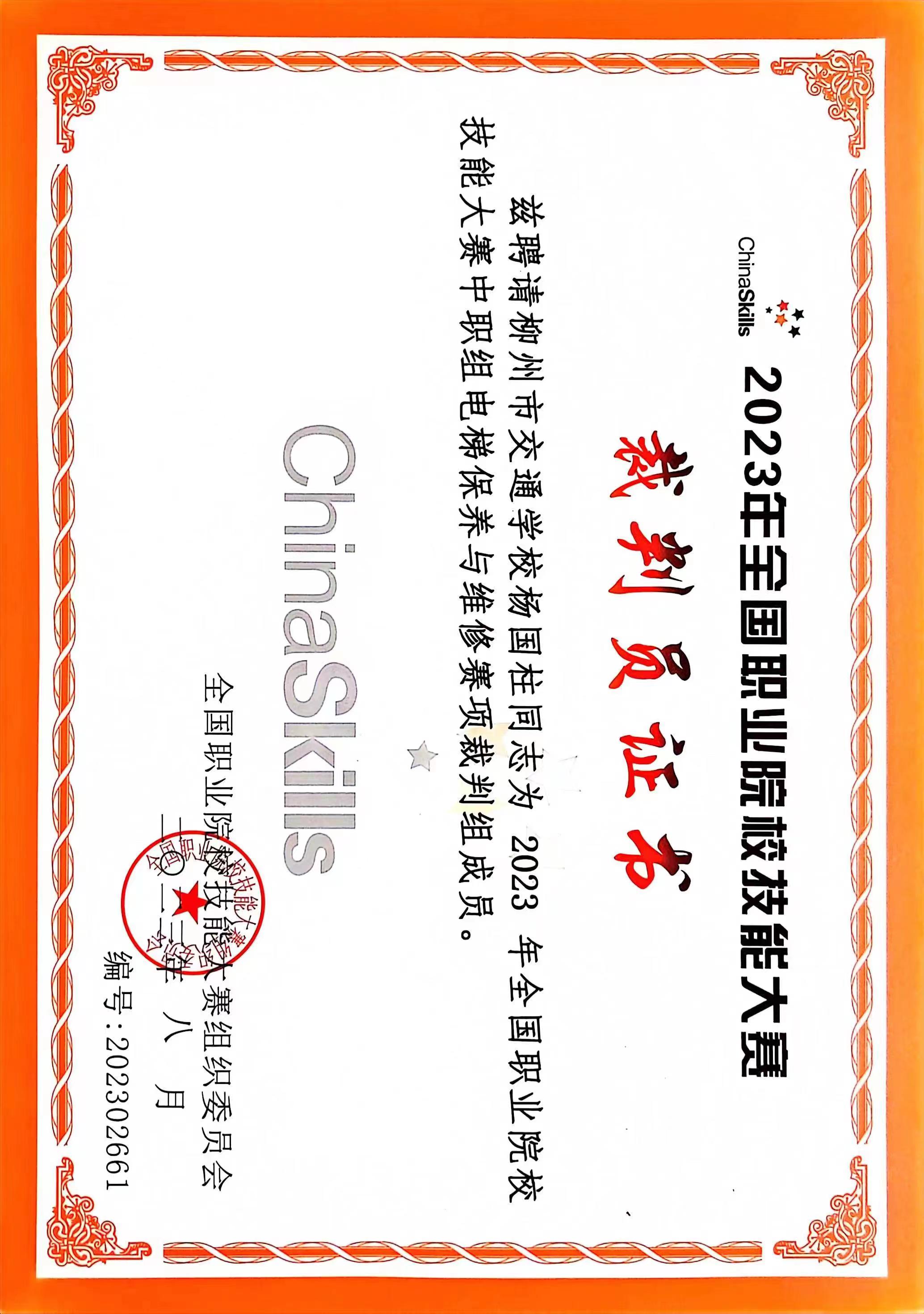 杨国柱教师受邀担任2023年全国职业院校技能大赛(电梯赛项)裁判