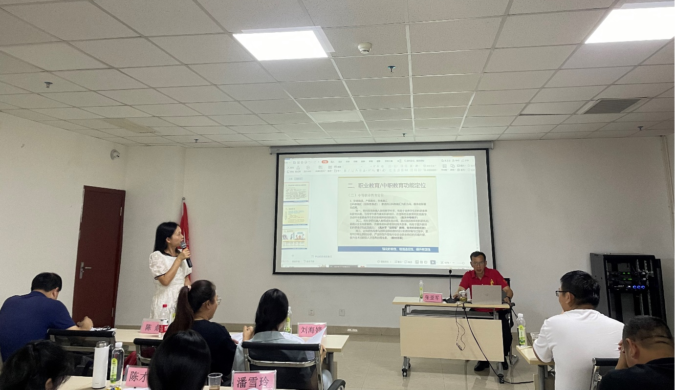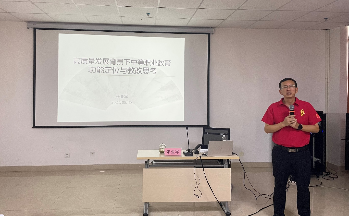 当天下午,贵州航天职业技术学院的张亚军副院长以现代职业教育政策走向为主线,重点关注了在高质量发展背景下中职学校品牌建设的规划与行动,并在学校制度建设及内部质量管理方面进行了经验分享。通过案例分享,让老师们深入了解了学校品牌建设的重要性,帮助老师们厘清现代职教教育的政策与发展趋势。