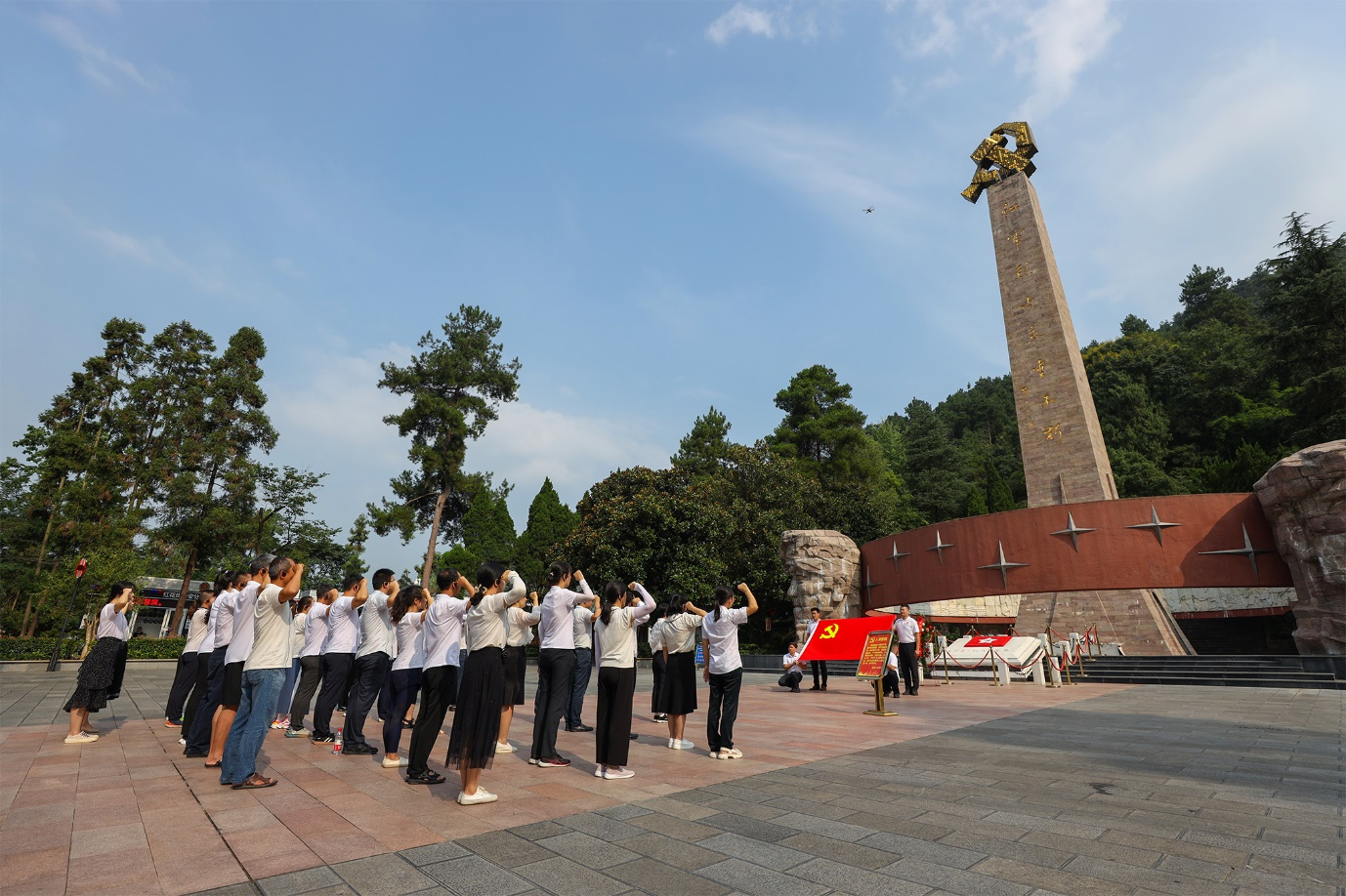 纪念碑前合影留念