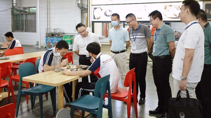 为切实保障广大师生用餐安全,严防食品安全事故发生,2023年9月20日,柳州市教育局赵从奎副局长、柳南区教育局张哲副局长、柳州市市场监督管理局陆军科长等到我校食堂进行检查指导。柳州市交通学校校长黄䶮、副校长周轶群及后勤负责同志陪同检查。