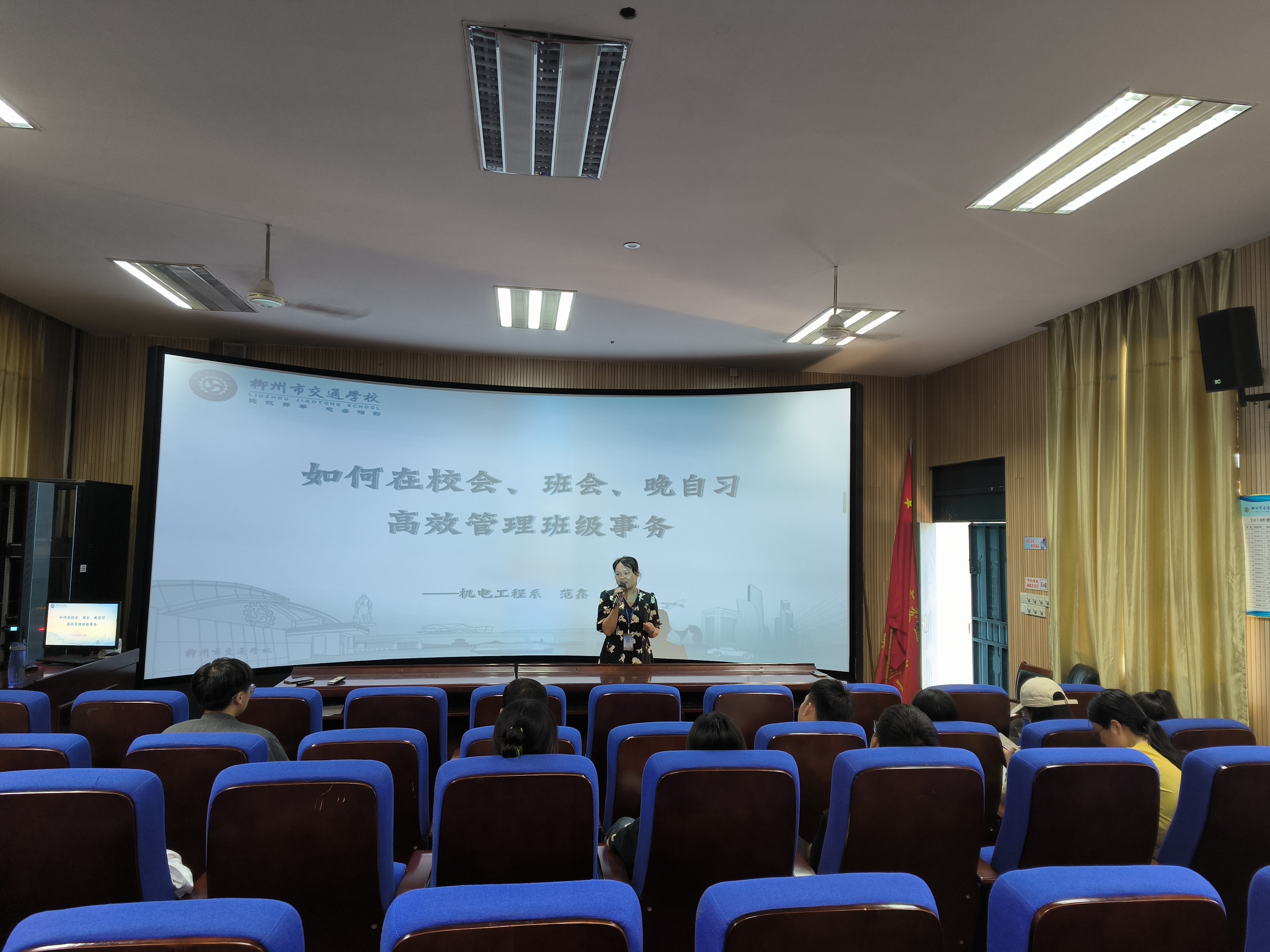 2023年9月26日,为了更好地提高班主任的班级管理能力,柳州市交通学校学生工作和安全保卫科为未满两年的新班主任们开展班主任业务培训。由机电工程系德育主任范鑫为新班主任开展主题为《如何在校会、班会、晚自习高效管理班级事物》的第一次班主任培训课程,学生工作和安全保卫科科长陈才连总结发言。