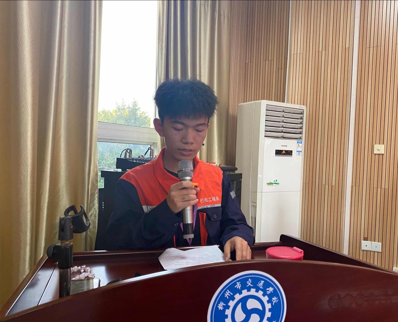 汽车工程系祁美娜老师作为指导老师代表发言,她表示,所有专业老师将加强赛前精心指导培训,努力提高学生的参赛水平,锤炼学生的职业技能水平。22电梯班刘俊军同学作为学生代表发言,刘俊军同学在2023的区赛电梯维修赛项中荣获二等奖,他表示,自己将精心准备,继续征战今年的比赛,不辜负老师、家长和社会的期望。