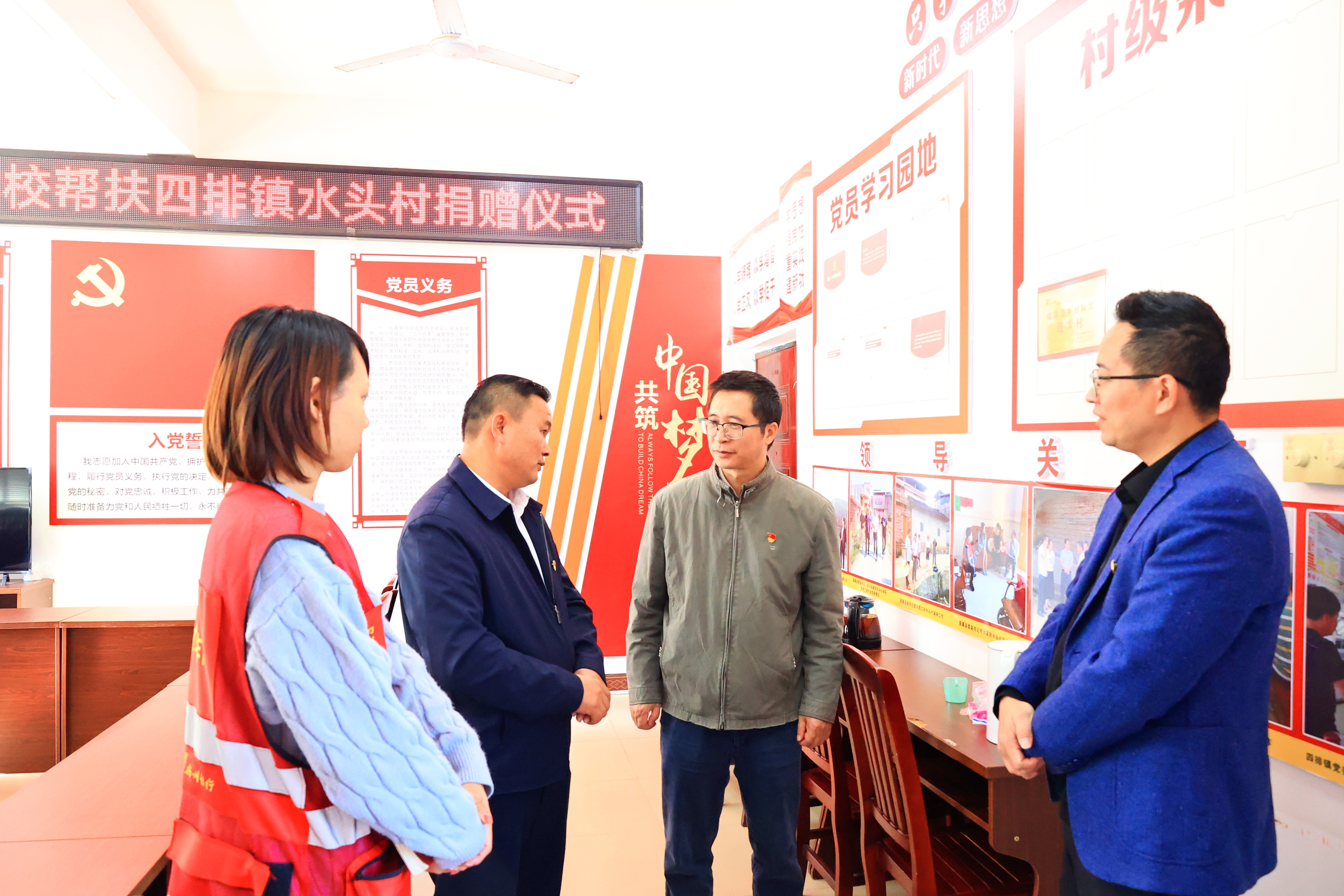 廖增勇书记向村党总支书记潘祖术详细了解村情村貌和工作开展情况,并表示学校将结合实际给予最大的帮助和支持。村总支书记潘祖术对我校为水头村的帮扶工作表达了感谢。他表示,柳州市交通学校急水头村之所急,第一时间把打印机赠送给水头村,解了村里燃眉之急,相信在村校双方共同努力下,一定能把水头村建设得更好。