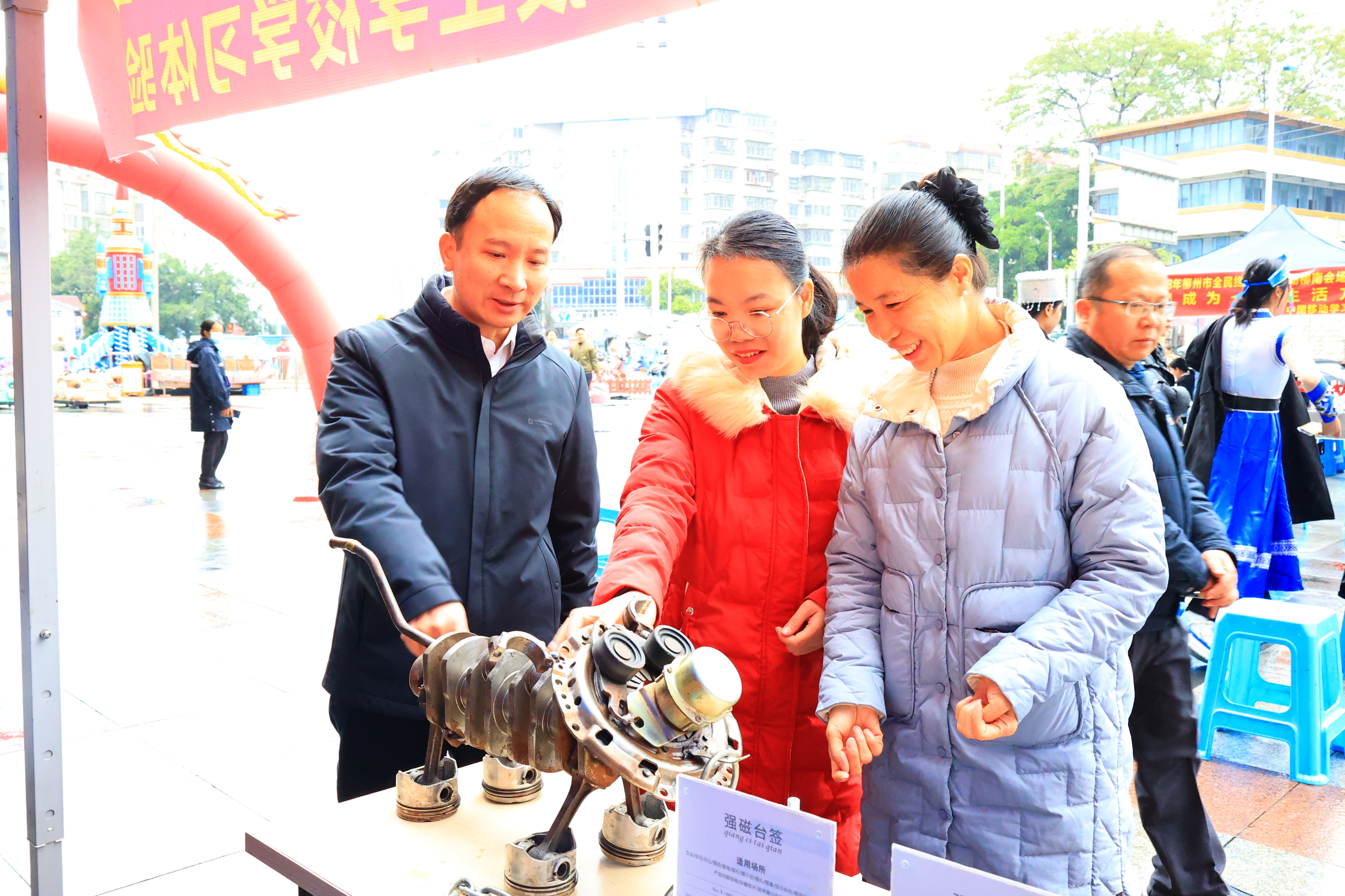 12月3日,由柳州市教育局、柳州市开放大学主办,柳南区教育局、柳州市交通学校承办,柳州市技工学校、柳南区银山街道万达社区协办,2023年柳州市全民终身学习活动周柳南会场开幕式在柳南万达广场隆重举行。柳南区教育局副局长覃兆梅、柳州市交通学校副校长罗柳健、柳南区银山街道万达社区党总支书记覃海亮、柳州市技工学校教务科副科长黄贤娇 出席开幕式。