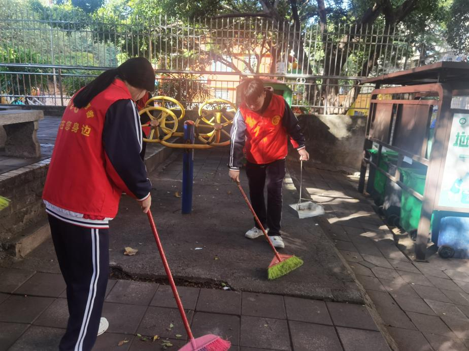 党员教师和学生志愿者们身着志愿服,带着宣传彩页,深入社区,围绕生活垃圾的四个类别——可回收物、厨余垃圾、有害垃圾、其他垃圾,结合生活中的实例向居民们宣传垃圾分类知识。随后,老师和同学们充分发扬了不怕脏、不怕累、不怕苦的精神,分区域对社区内卫生死角进行了彻底清理,手持垃圾捡拾夹、扫把,对丢弃在社区的塑料袋、碎纸屑、烟头等垃圾废弃物进行清理分类。