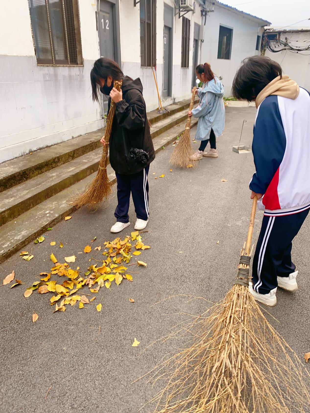 师生清扫落叶
