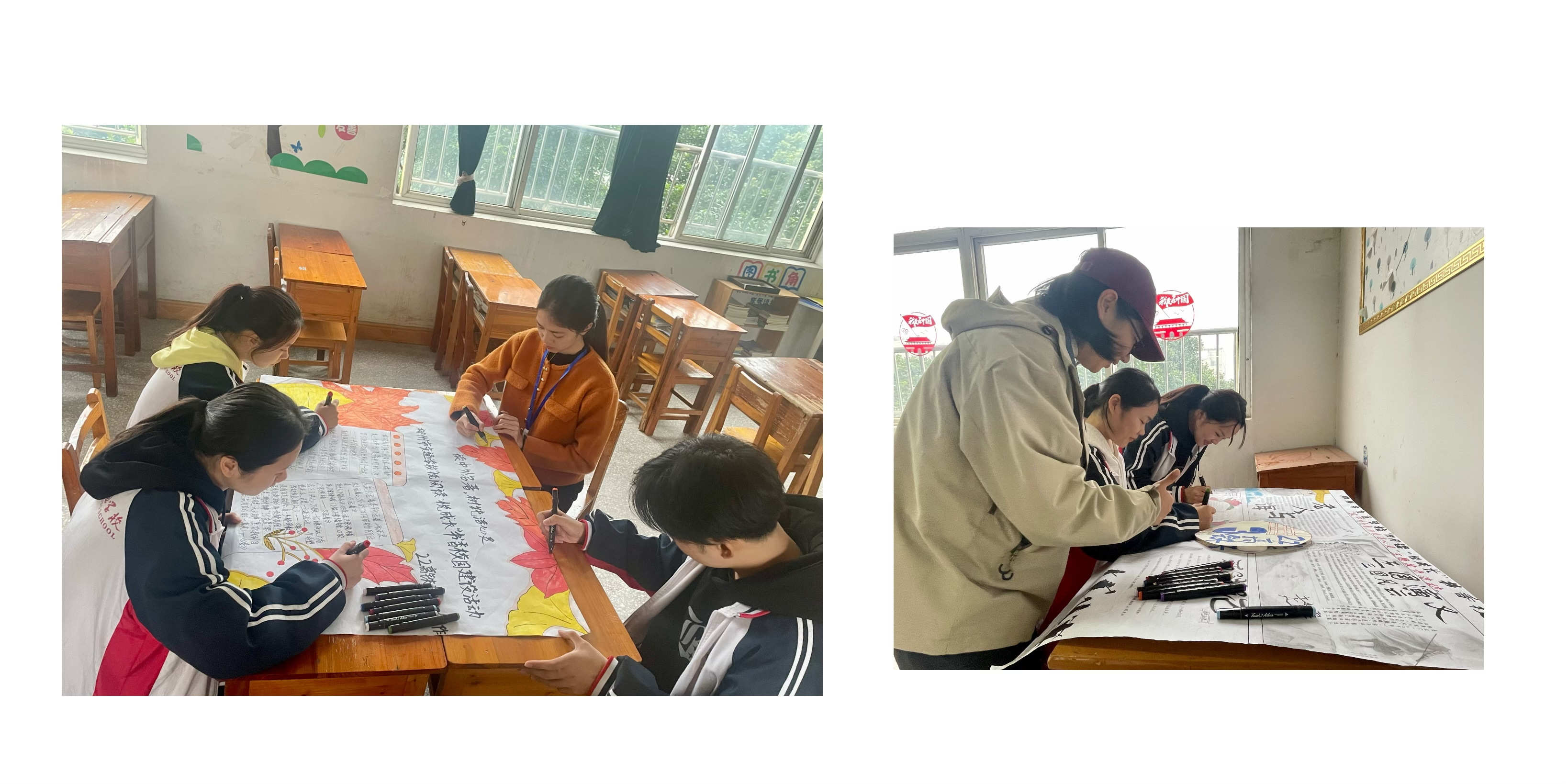 班主任与学生们共同制作手抄报