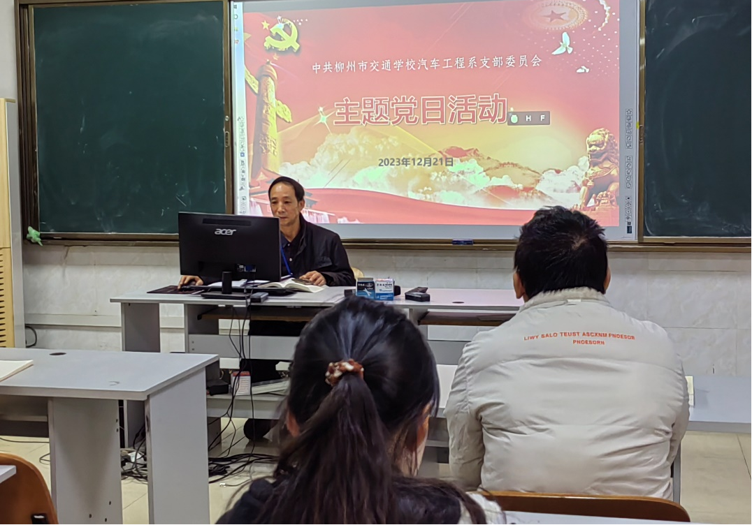 2023年12月22日下午,汽车工程系党支部在支部党群活动室开展主题党日活动,支部书记徐红艳主持会议,全体党员参加了会议。