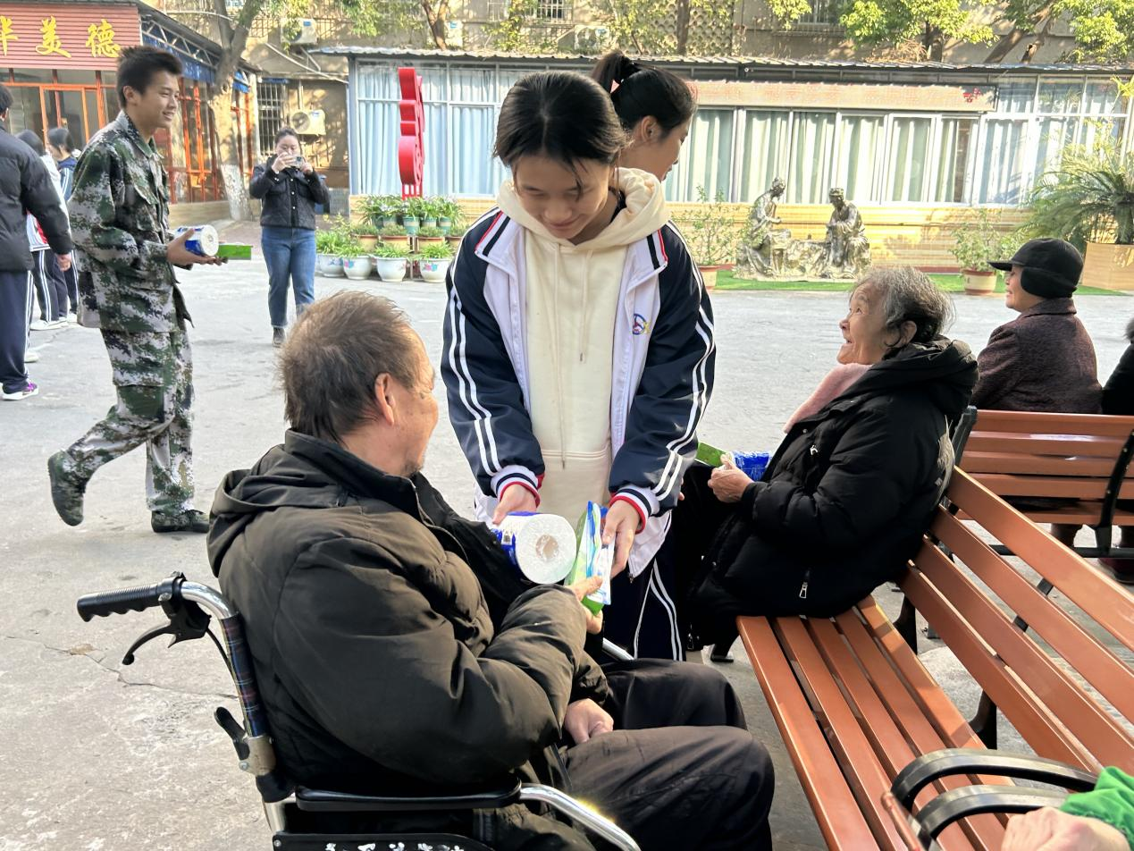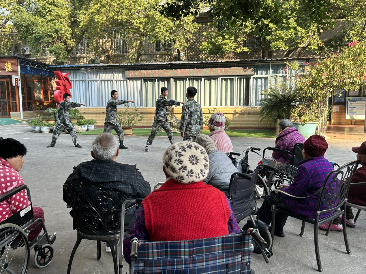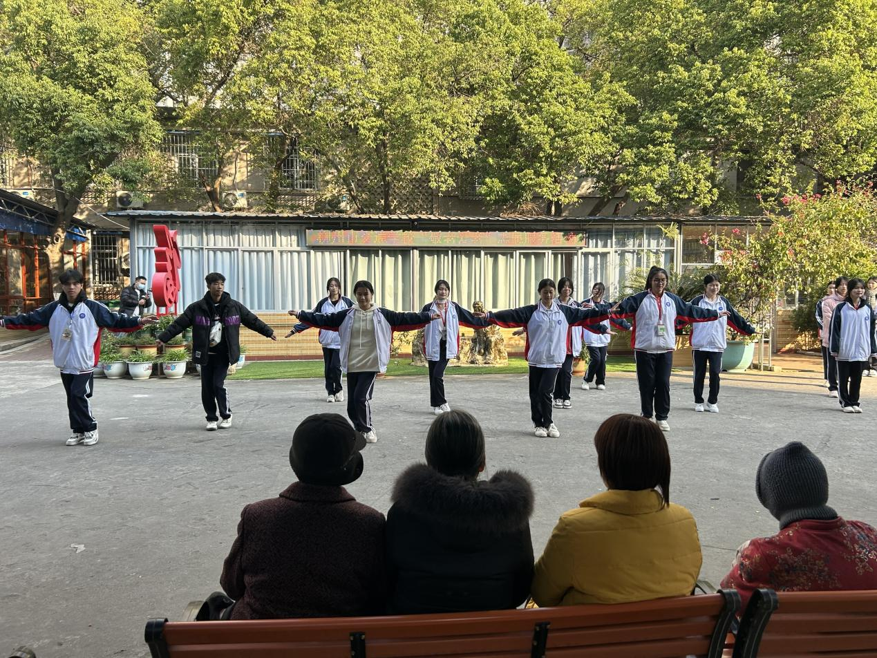 伴随着冬日的暖阳,志愿者们为老人们献上了精彩的节目表演。《最炫民族风》的歌伴舞让老人们忍不住的拍手跟唱,《精忠报国》军体拳的刚劲有力更是赢得了老人们的阵阵掌声。