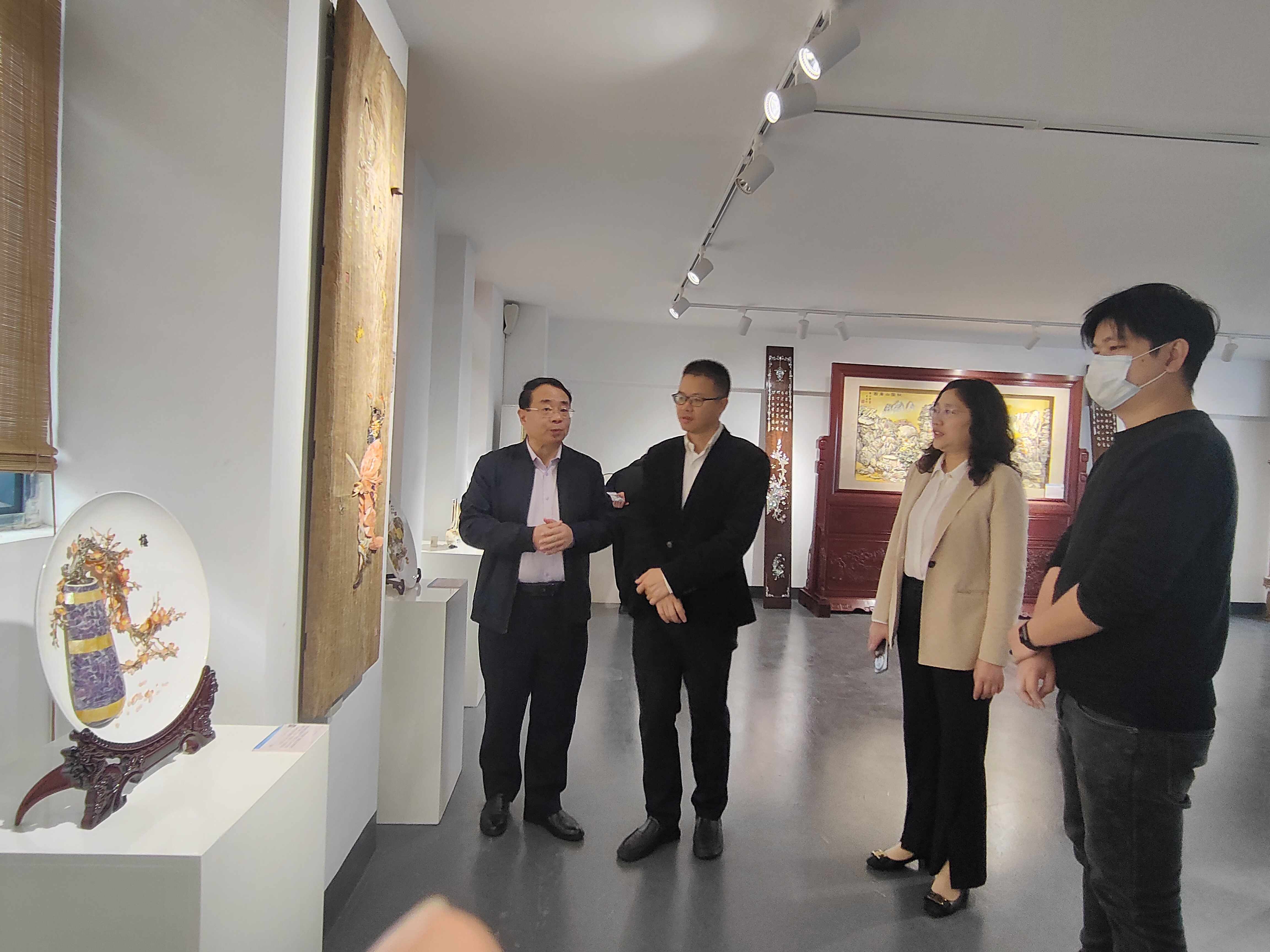 在参观活动中,宋校长热情地向我们介绍了贝雕艺术馆,让我们感受到精美绝伦的贝雕工艺品,老师们对学生根据贝壳的纹理、色泽、形状,结合传统文化智慧、贝壳的自然美、国画的格调美精心雕琢出一幅幅栩栩如生的作品产生浓厚的兴趣,使每位成员享受到一场视觉盛宴。