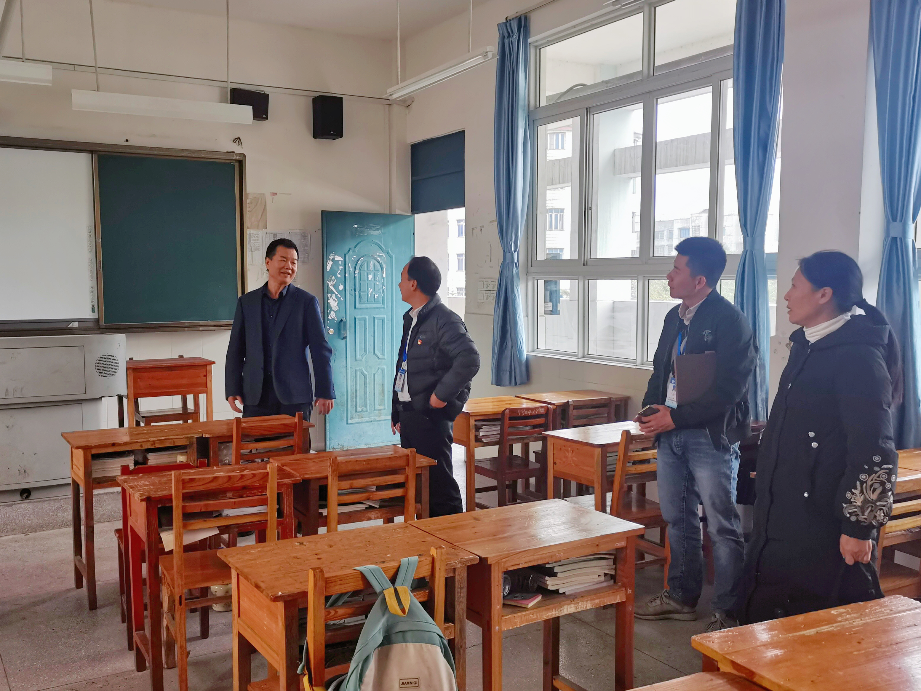 与会人员实地查看学校办学硬件设施