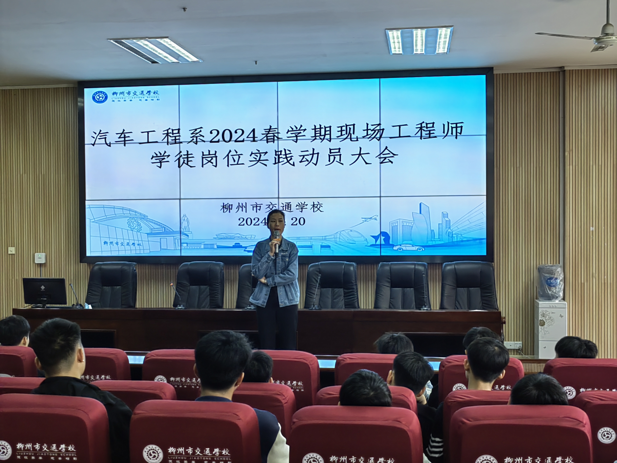 2月20日上午,汽车工程系召开此次工程师学徒岗位实践暨安全动员大会,学生工作和安全保卫科副科长张喜财、汽车工程系领导、实习带队指导老师及班主任参加了本次动员大会。