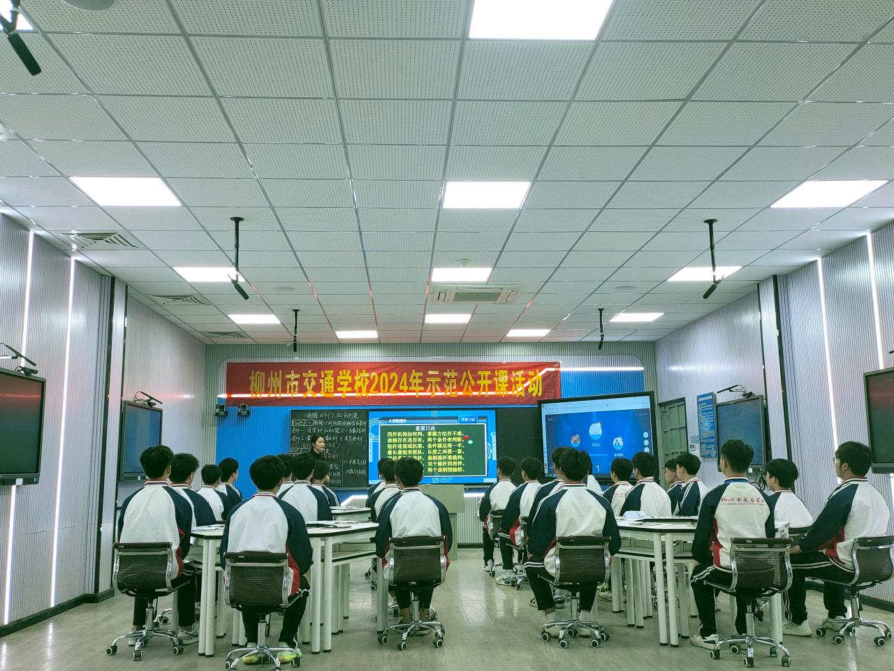 4月16日,我校在智慧教室开展了示范公开课活动。机电工程系何微老师作为本次授课教师,授课课程内容为《铰链四杆机构的判定》,全体教师在第三报告厅观看直播。