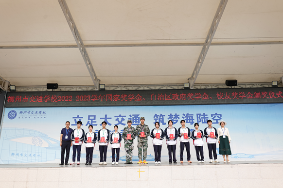 2024年4月22日上午,柳州市交通学校2023年秋学期五星级班级、五星级学生以及各级奖学金表彰大会在操场隆重举行。大会对2023年秋学期表现优异的班级、学生以及国家级奖学金、自治区奖学金、校友奖学金获得者进行表彰并颁发了荣誉证书。校党委副书记、校长黄䶮出席大会并为国家级奖学金获奖者颁奖。梁汉飞、周轶群、罗柳健等校领导及各党支部书记、系部主任等为五星级班级、学生、自治区奖学金、校友奖学金获得者颁奖。