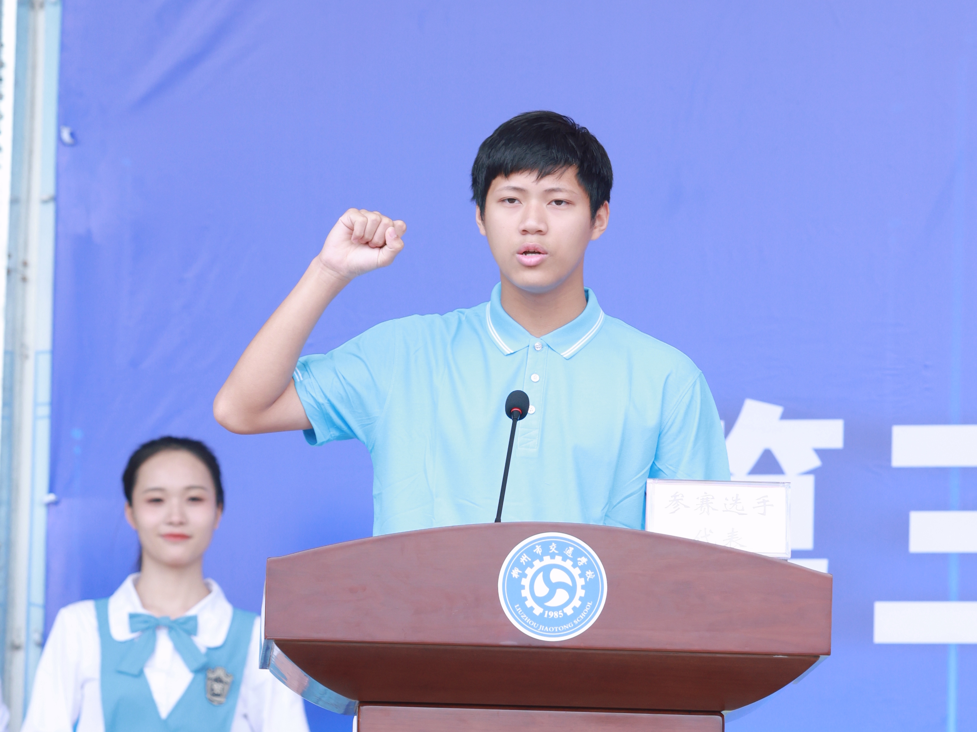 裁判员代表吕文玉及参赛学生代表付鑫屹在开幕式上宣誓,表示将严格遵守比赛纪律,恪守比赛规则,服从组委会指挥,营造公平公正的竞赛环境,以好的精神风貌参赛。