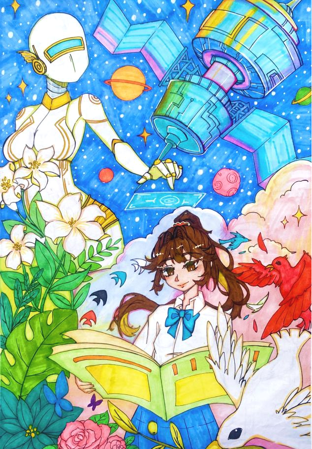 交校动漫与游戏制作专业师生通过绘画这一富有表现力的艺术形式,展现书籍与阅读所带来的美好与乐趣,让人们在欣赏画作的同时,品味书香,感受阅读的魅力。